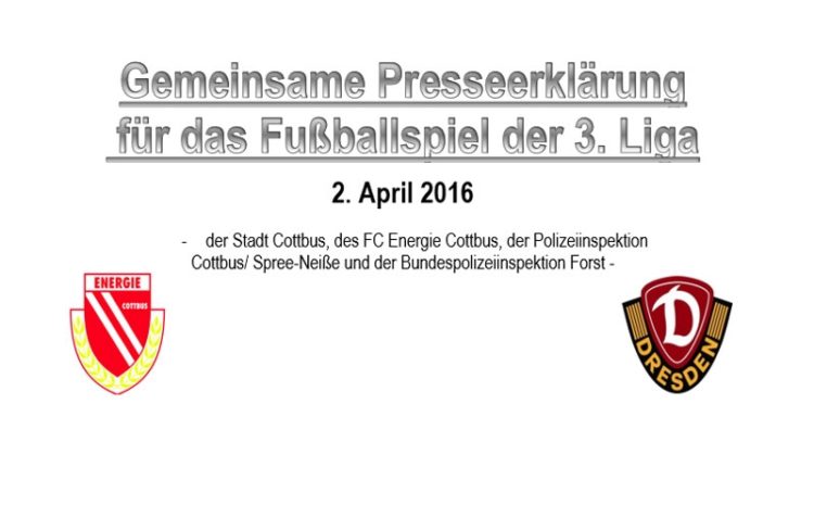 Quelle & Fotos: Stadt Cottbus, FC Energie Cottbus, Polizeiinspektion Cottbus/ Spree-Neiße und Bundespolizeiinspektion Forst