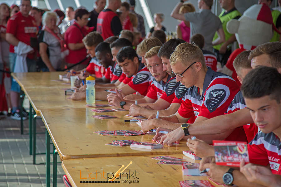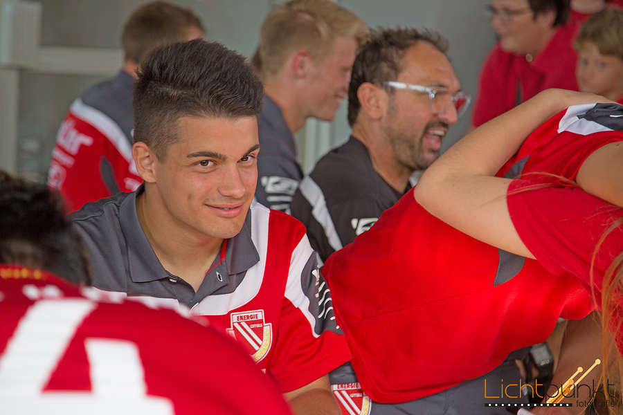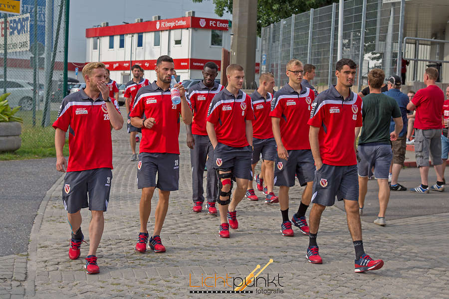 Ein tüchtigen Qualitätssprung im Vergleich zum Vorwochen-Test gegen Teplice haben die Energie-Fußballer eine Woche vor dem scharfen Start ihren 3000 Fans bei der Partie gegen den 1.FC Union Berlin aufgezeigt. Obwohl die Gäste in der Spitzengruppe der zweiten Bundesliga erwartet werden, konnte ein Qualitätsunterschied zum Viertligisten Energie Cottbus grundsätzlich nicht festgestellt werden. Mit viel Eifer und Kampfkraft wurden die Gäste sichtlich verunsichert, so sehr sich deren Auffälligster, Felix Kross um einen geordneten Spielaufbau bemühte. Insofern kam der Cottbuser Führungstreffer in der 16. Minute von Benjamin Förster nach großartiger Vorarbeit von Kevin Weidlich nicht zufällig zustande. Schade nur, dass schon zwei Minuten danach eine Abstimmungsschwäche im Energie-Abwehr-Verbund den Unionern den schnellen Ausgleich durch Philipp Hosiner ermöglichte. Freilich hatte der Zweitligist wohl mehr Spielanteile, doch zeigte sich die superjunge, fast schon routiniert agierende Abwehr mit Erich Jeschke, Philipp Knechtel und Malte Karbstein stets als Herr der Lage.