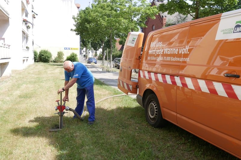 Die anhaltend hohen Temperaturen und die fehlenden Niederschläge haben den Bedarf an Trinkwasser in den letzten Tagen wieder ansteigen lassen. So hat die LWG Lausitzer Wasser GmbH & Co. KG in den ersten Julitagen täglich über 23 Millionen Liter Trinkwasser ins Netz ihres Versorgungsgebietes eingespeist, am Mittwoch waren es sogar 29 Millionen Liter. Die Tagesmenge liegt im Jahresdurchschnitt nur bei rund 18 Millionen Liter.