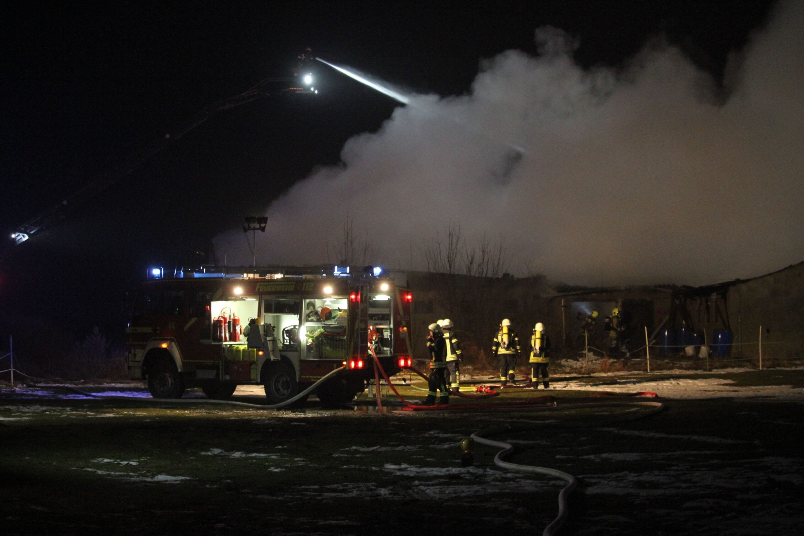 Die Löschmaßnahmen erfolgten über zwei C-Rohre, mit denen die Einsatzkräfte die Flammen gezielt bekämpften. Zusätzlich kam eine Drehleiter zum Einsatz, um den Scheunenbrand in Zützen insbesondere von oben zu bekämpfen. Mithilfe der Drehleiter konnten die Feuerwehrleute verbliebene Glutnester im Dachbereich gezielt ablöschen und somit ein Wiederaufflammen verhindern.