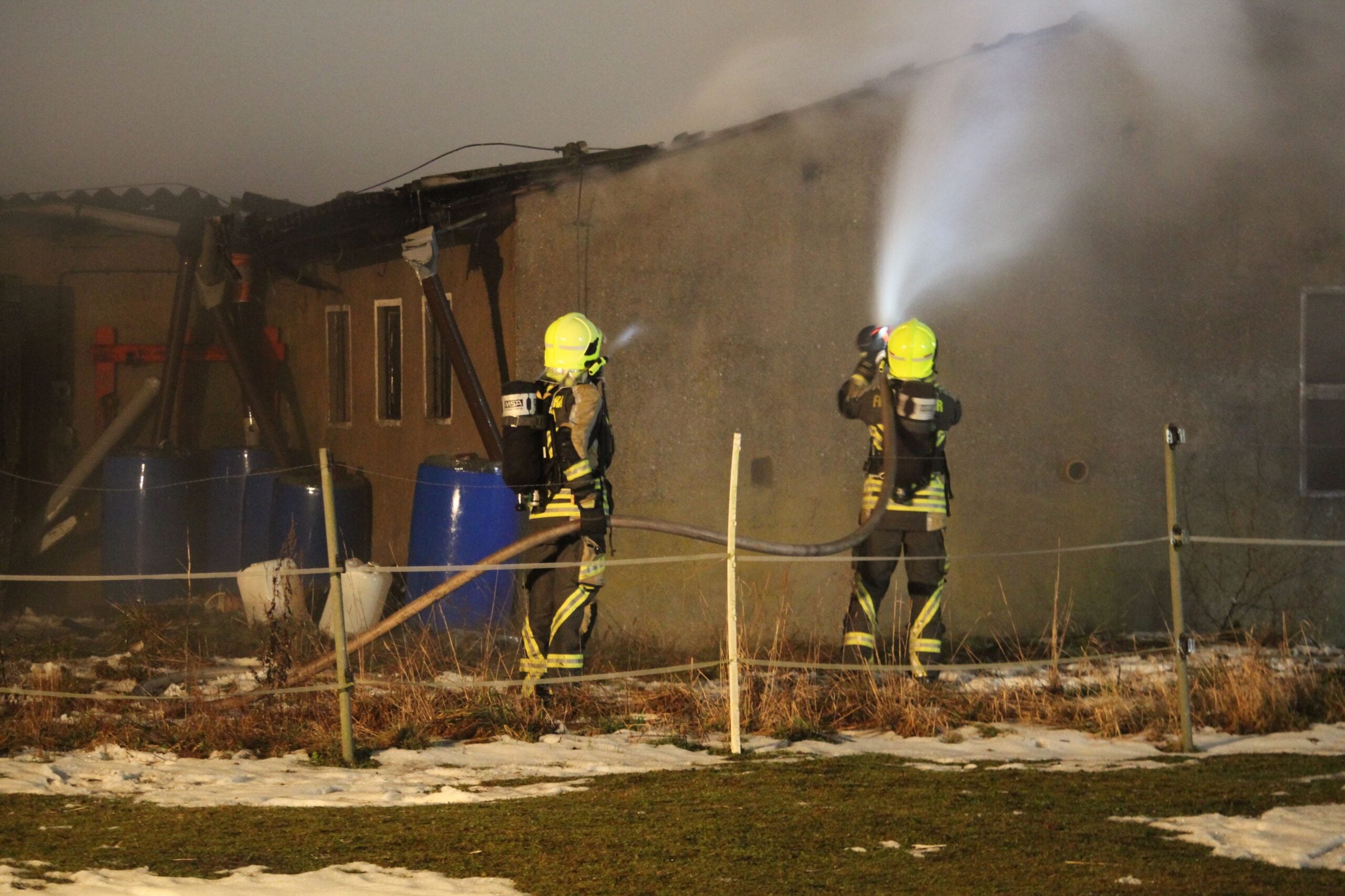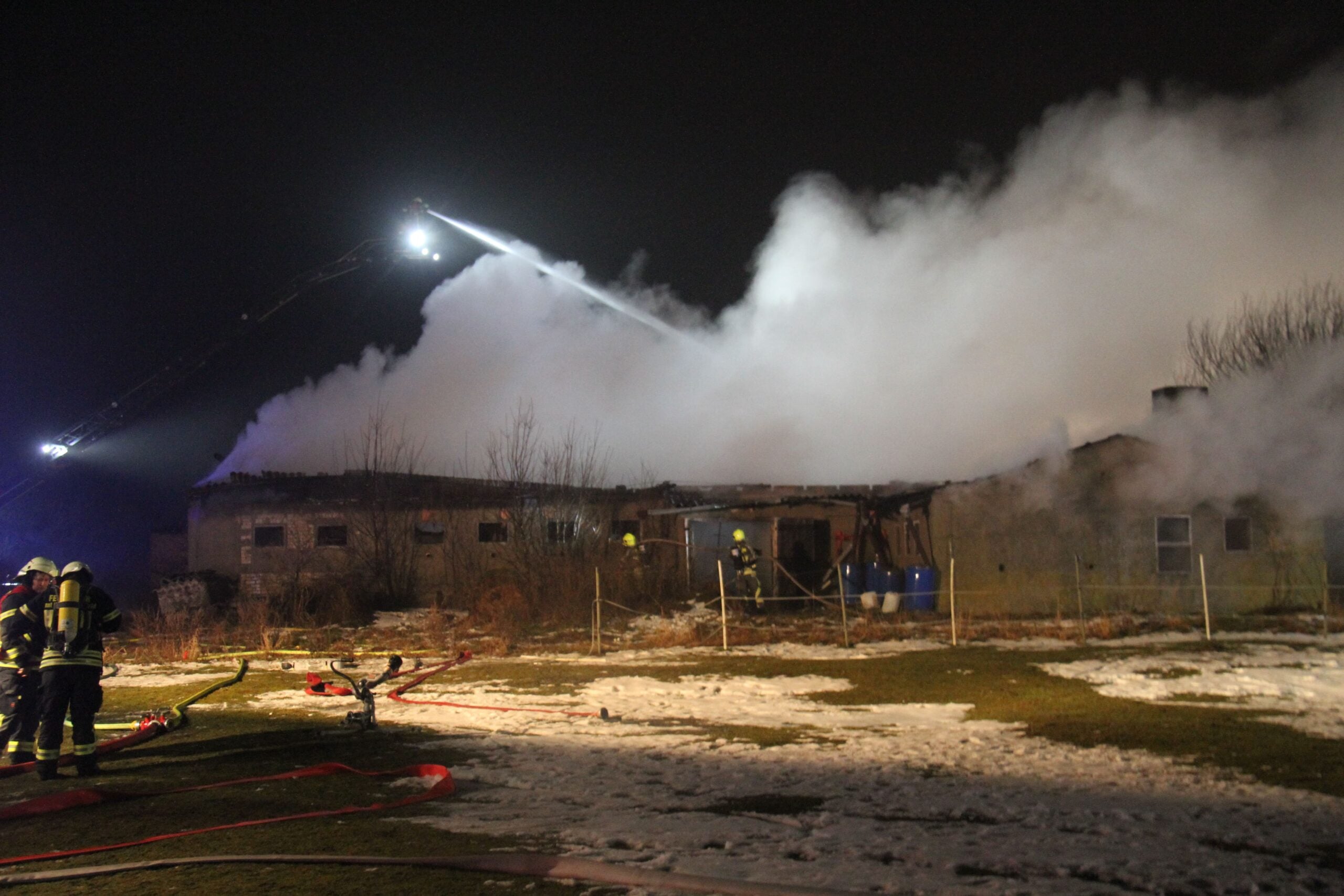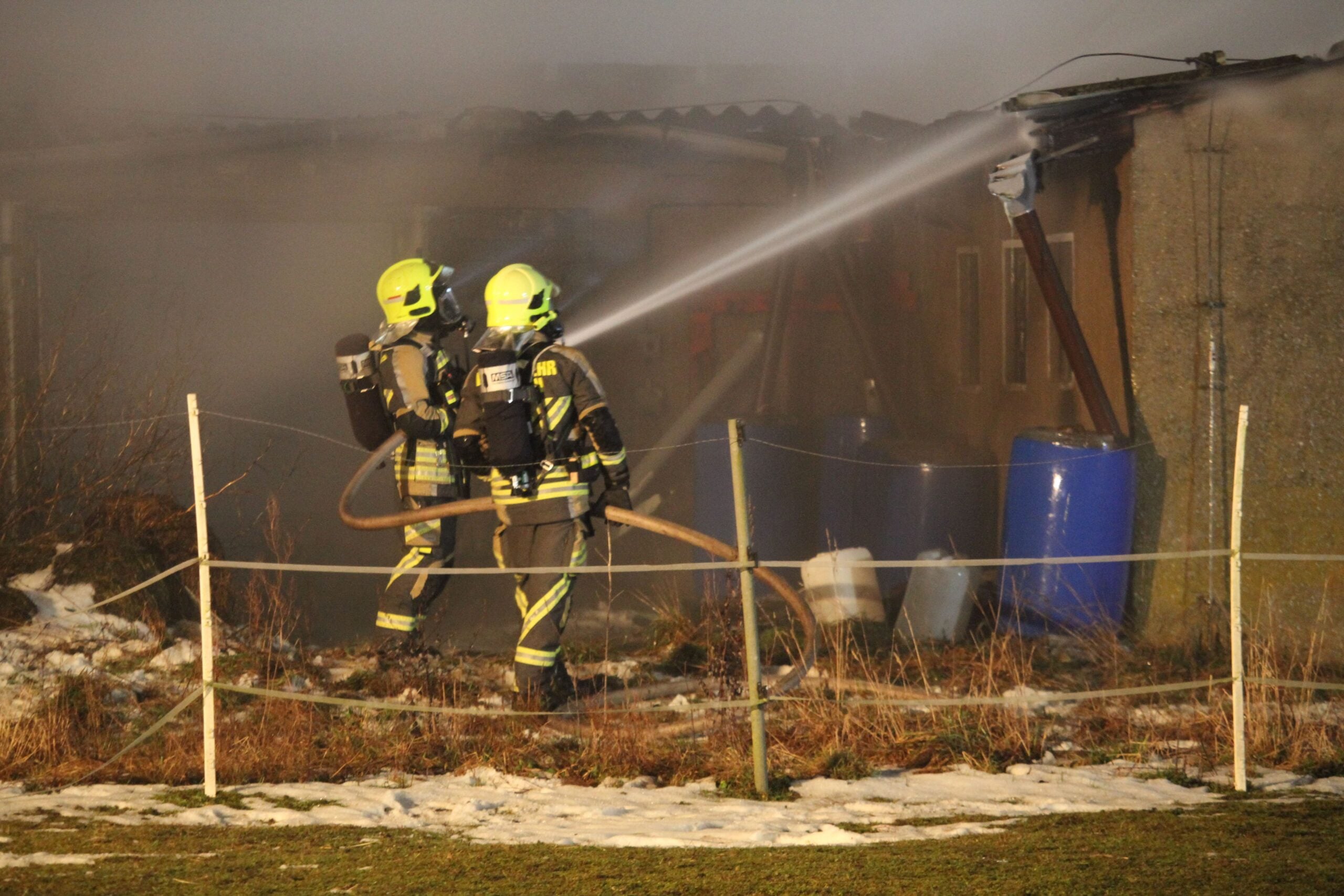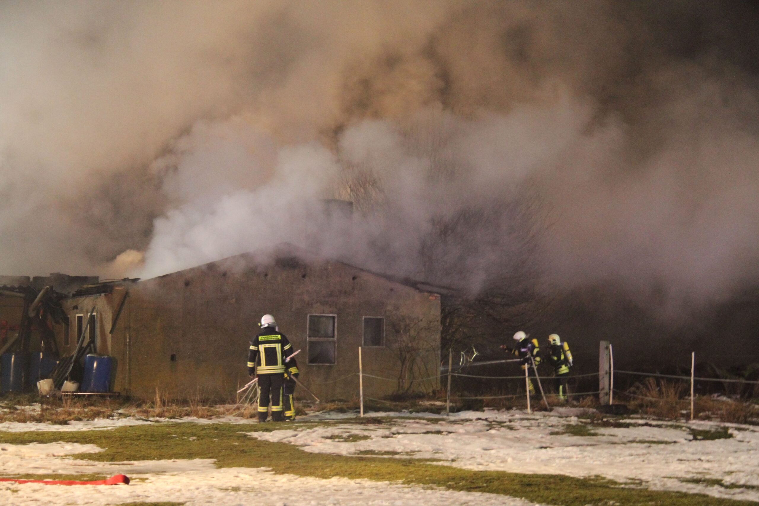 Aufgrund der Asbestbelastung durch das eingestürzte Dach setzten die Einsatzkräfte umfassende Sicherheits- und Hygienemaßnahmen um. Diese Vorkehrungen waren notwendig, weil Asbest bei einem Brand gefährliche Fasern freisetzen kann, die sowohl für die Einsatzkräfte als auch für Anwohner ein Gesundheitsrisiko darstellen. Die Feuerwehrleute arbeiteten daher mit besonderer Vorsicht und unter Einhaltung strenger Schutzprotokolle.