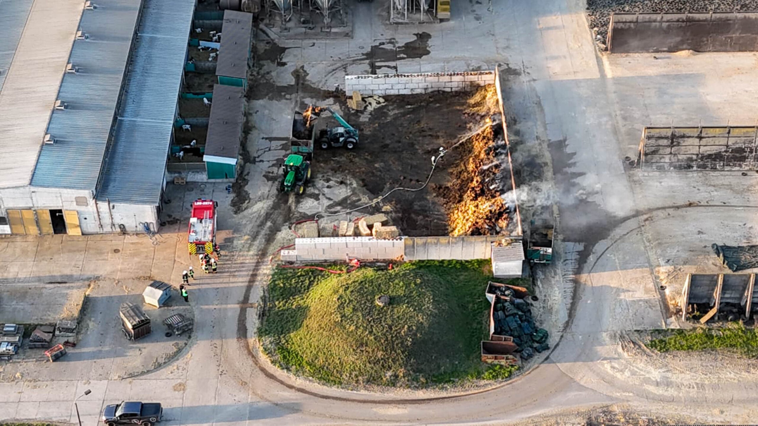 Strohmiete gerät in Brand – Betreiber reagiert schnell