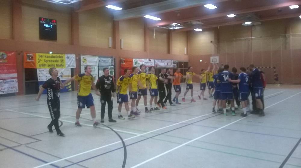 Beide Mannschaften traten nicht in Bestbesetzung an. Trotzdem entwickelte sich ein temporeiches und variables Spiel. Die Spreewälder agierten dabei über 35 Minuten spielbestimmend, offenbarten dann jedoch wiederholt Schwächen gegen die offensive Manndeckung ihrer beiden Rückraumschützen Nils Werner und Pascal Freund. Im Vergleich zum Hinspiel verlieren die Gastgeber nicht vollends den Kopf, leisten sich zwar Fehler und agieren unglücklich im Abschluss, finden aber in der spielentscheidenden Phase die richtigen Lösungen.