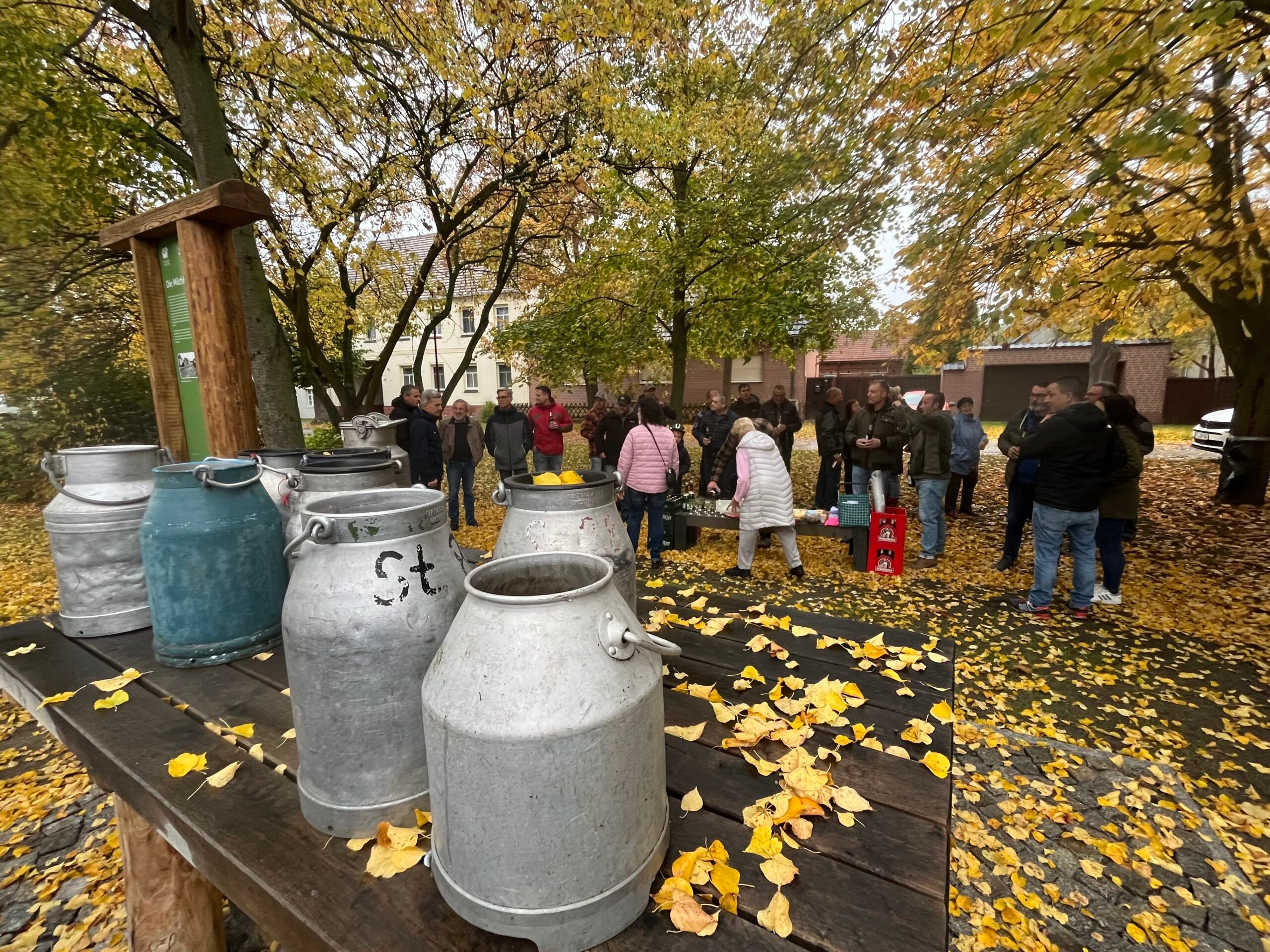 Ortsvorsteherin Elvira Vogel dankte in ihrer Ansprache der LAG Elbe-Elster, der Stadtverwaltung Finsterwalde sowie den vielen freiwilligen Helferinnen und Helfern, die zum Gelingen beigetragen hatten. In ihrem Rückblick erinnerte sie an die Zeit, als die Milch bis Anfang der 1980er Jahre mit Lanz Bulldogs zur Molkerei transportiert wurde. Damals mussten täglich bis zu 165 Milchkannen mehrfach bewegt werden. Auf dem Rückweg aus Finsterwalde brachten die Fahrer häufig Baumaterialien oder Waren für die Bewohner von Sorno und Staupitz mit.