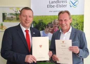 Landrat Christian Heinrich-Jaschinski hat am 22. Mai im Kreishaus in Herzberg dem Partnerschaftsbeauftragten des Landkreises, Dieter Jagode, zur Ehrung mit...
