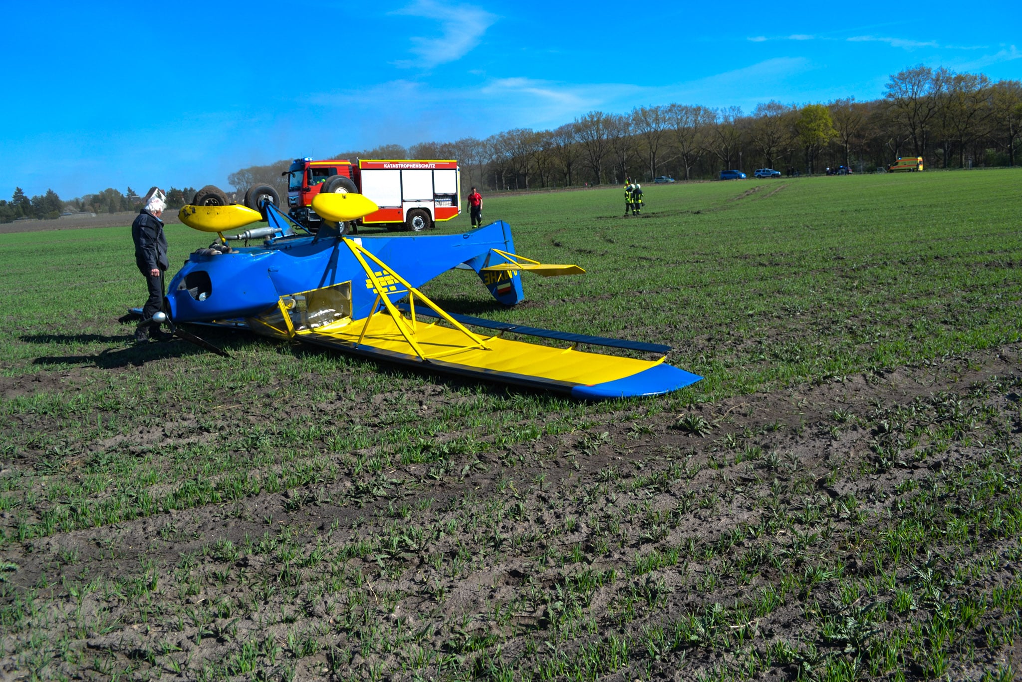 Beim Eintreffen bestätigte sich die Lage. Ein einmotoriges Propeller-Kleinflugzeug war auf einem Feld abgestürzt. Das Flugzeug kam abseits befestigter Flächen zum Stillstand und wurde dabei sichtbar beschädigt.