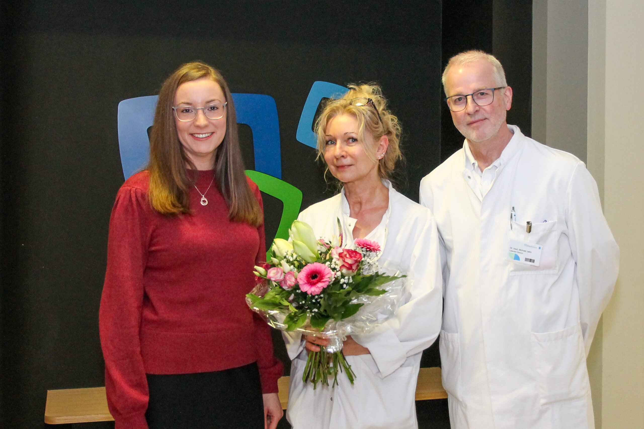 v.l.n.r.: Geschäftsführerin Juliane Kirfe, Sektionsleiterin Michele Schreyer, Leitender Oberarzt Dr. med. Michael Jahn (Bild: Lausitzer Seenland Klinikum)