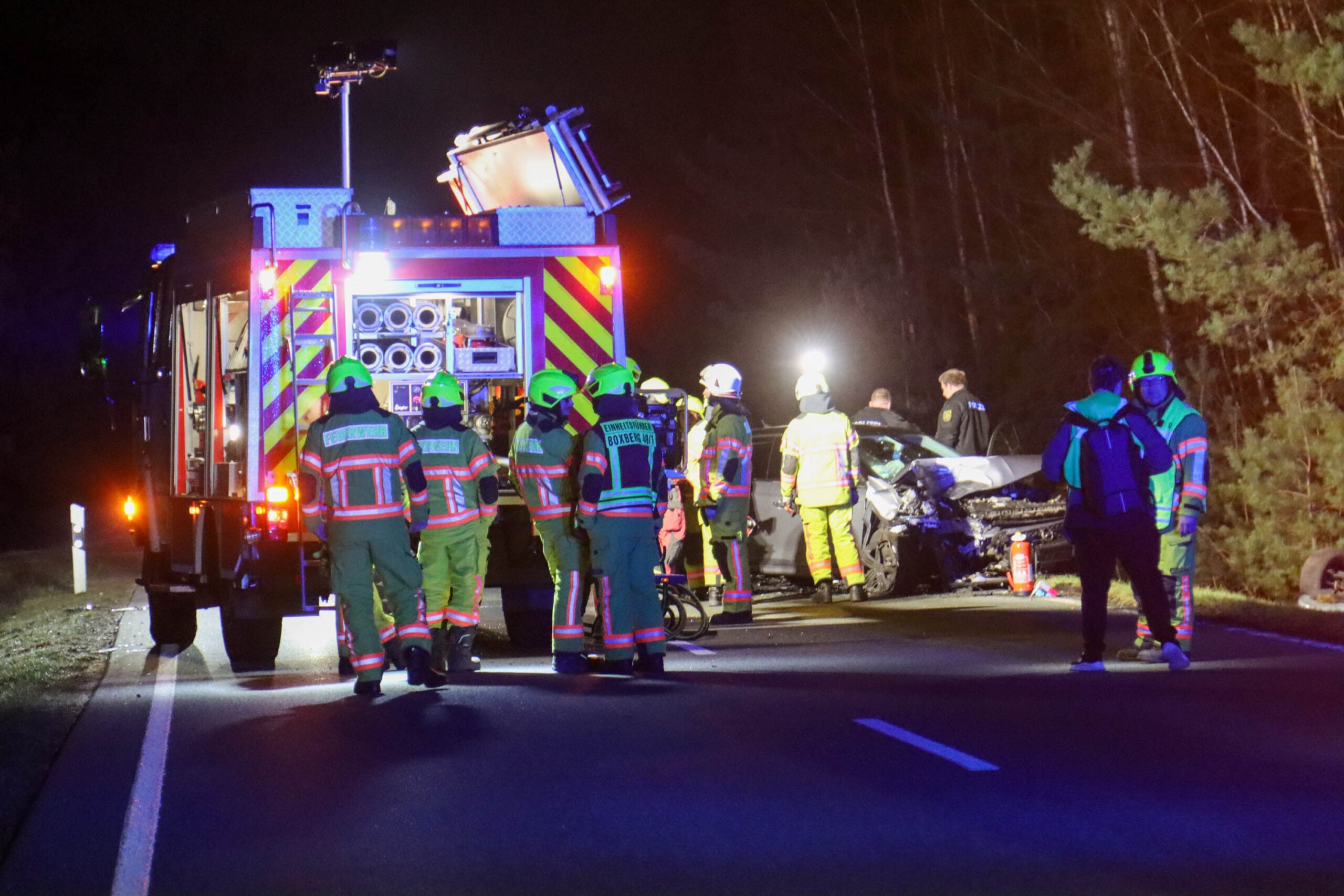 Der Unfall auf der B156 bei Uhyst ereignete sich kurz nach dem Ortsausgang. Nach bisherigen Erkenntnissen der Polizei stand ein weiterer Pkw aus bislang ungeklärter Ursache am rechten Fahrbahnrand. Die 48-jährige Fahrerin erkannte das stehende Fahrzeug in der Dunkelheit offenbar zu spät und prallte mit ihrem Pkw dagegen. Durch die Wucht des Aufpralls wurde das stehende Auto über die Fahrbahn geschleudert und überschlug sich.