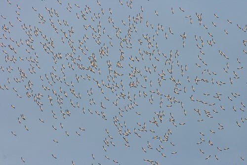 Foto 3: Ein Schwarm Weißstörche (Ciconia ciconia) während des Herbstzuges über Israel, © Henrike Mühlichen
