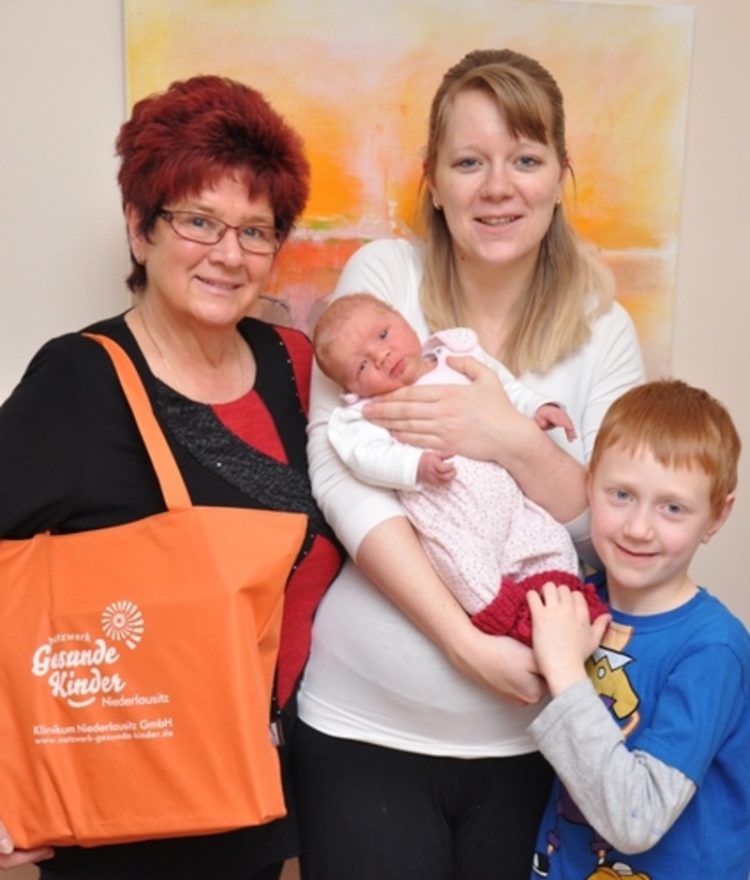 Am 26. Februar 2014 erblickte Luise Donath, das 1.500 Baby im Niederlausitzer Netzwerk gesunde Kinder, das Licht der Welt. Mama Kathrin Donath (30) hat bereits 2007 beim Netzwerk mitgemacht, da sie beim ersten Kind noch viele Fragen hatte und wertvolle Tipps bekommen wollte. Auch die Angebote der Elternakademie haben sie gelockt. Die Entscheidung mit dem zweiten Kind auch am Netzwerk Gesunde Kinder teilzunehmen fiel Frau Donath leicht: „Ich denke mir, dass ich so direkt über Aktuelles und Neues informiert werde, denn sicherlich hat sich in den letzten sieben Jahren etwas geändert. Ich möchte auch gern wieder an der Elternakademie teilnehmen, weil ich die Themen interessant finde und nicht zuletzt freue ich mich auch auf das schöne Begrüßungsgeschenk mit dem Baby-Schlafsack und den Gutscheinen z.B. für das Baby-Schwimmen oder eine Massage.“