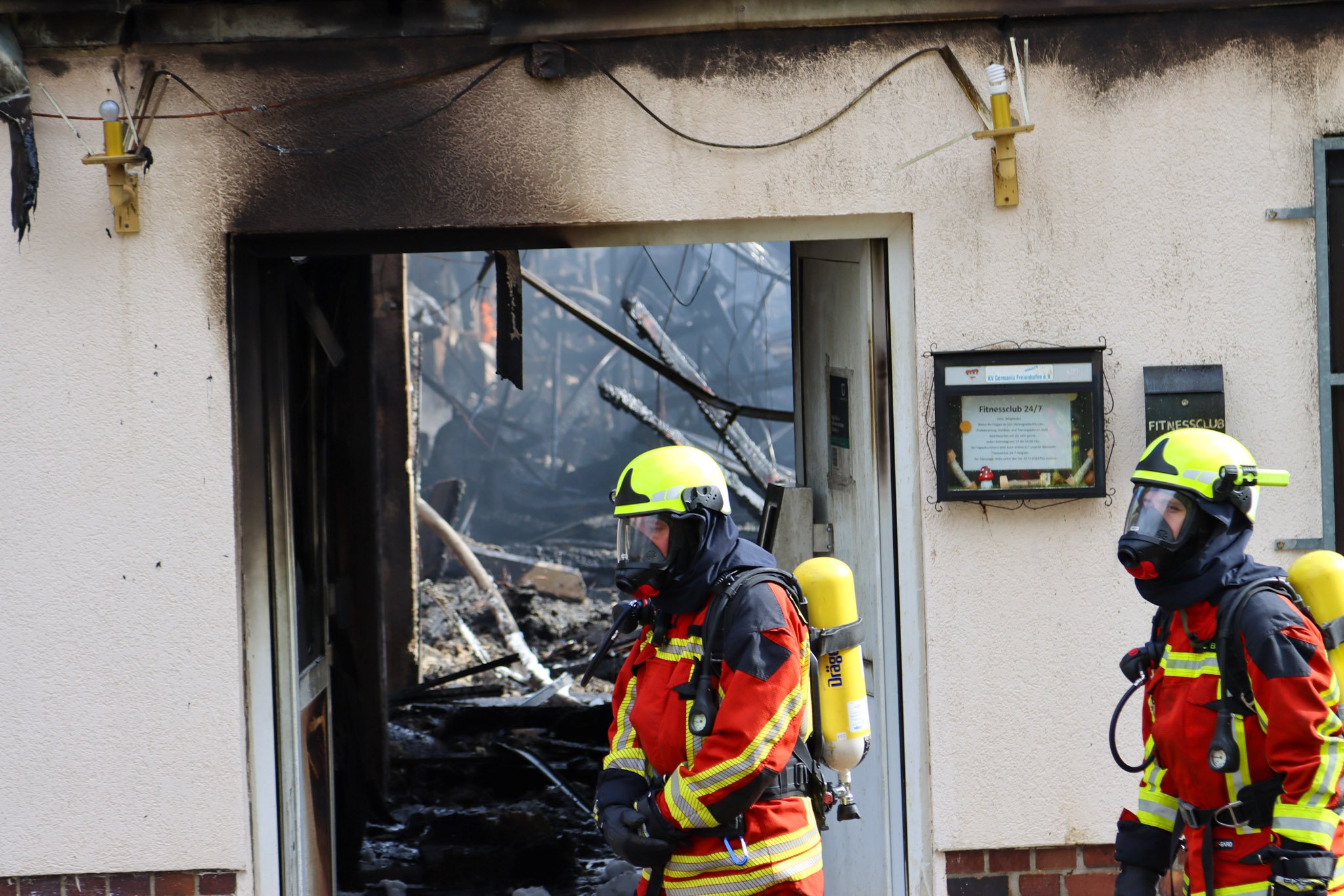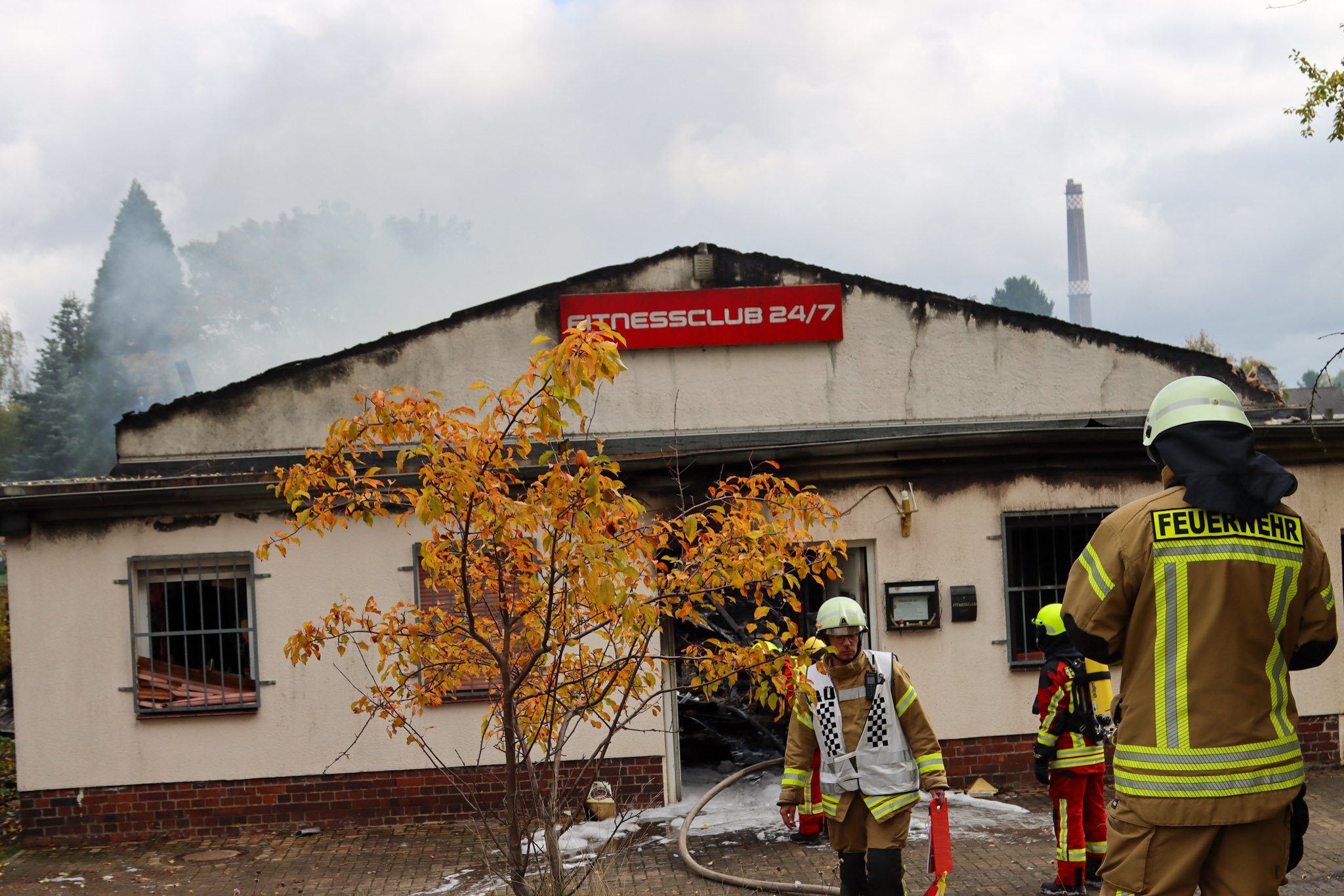 Ein Großbrand hat am Donnerstagmorgen in der Dobristroher Straße in Freienhufen ein Fitnessstudio weitgehend zerstört. Aus bislang ungeklärter Ursache geriet das Gebäude gegen 6.25 Uhr in Brand. Beim Eintreffen der ersten Einsatzkräfte stand das Fitnessstudio bereits in Vollbrand. Dichter Rauch drang aus dem Dachbereich, Flammen schlugen meterhoch in den Himmel. Mehrere Trupps unter schwerem Atemschutz (PA) gingen sofort zur Brandbekämpfung vor, sowohl im Außen- als auch im Innenangriff.