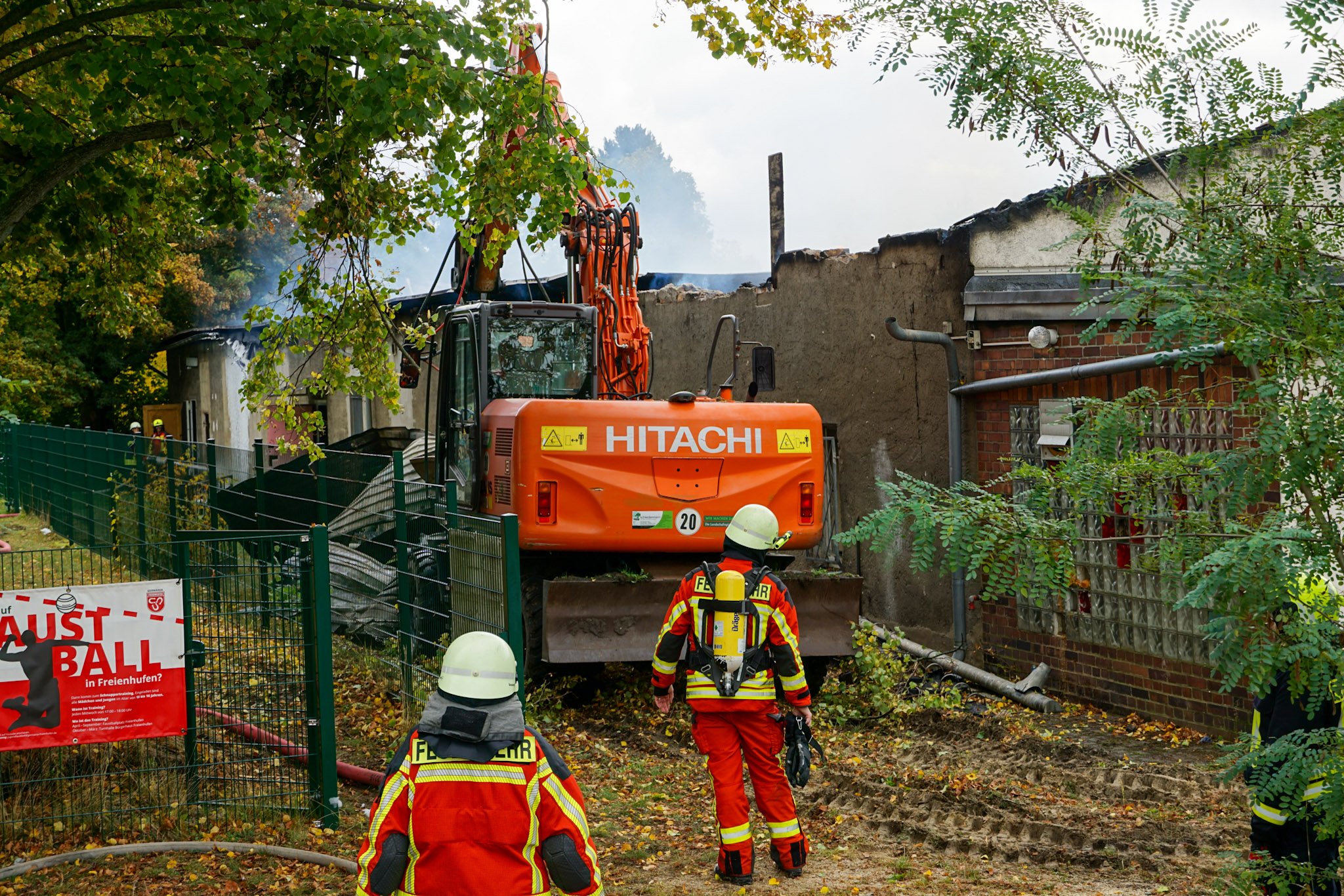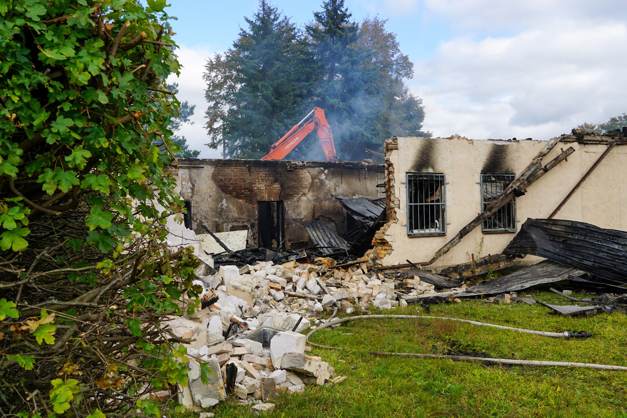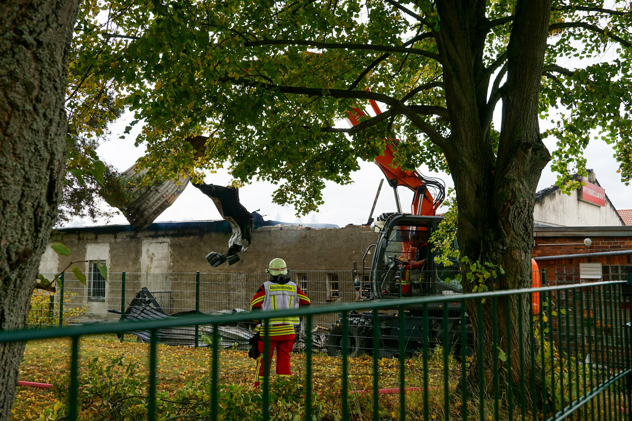 Im Einsatz befanden sich insgesamt 65 Einsatzkräfte mit 14 Fahrzeugen aus Großräschen und den umliegenden Ortsteilen. „Das Dach war teilweise eingestürzt und musste geöffnet werden, um Glutnester abzulöschen“, berichtete der Einsatzleiter vor Ort. Zur Unterstützung wurden zwei Bagger angefordert, die die Dachhaut aufrissen und so den Zugang zu den schwer erreichbaren Brandstellen ermöglichten. Der Einsatz dauerte bis in die Mittagsstunden an. Aufgrund der umfangreichen Nachlöscharbeiten plant die Feuerwehr am Abend sowie am folgenden Tag erneute Kontrollen der Brandstelle, um ein Wiederaufflammen auszuschließen. Verletzt wurde nach bisherigen Informationen niemand. Die Brandursache ist noch unklar und wird derzeit durch die Polizei ermittelt. Der entstandene Sachschaden dürfte erheblich sein.