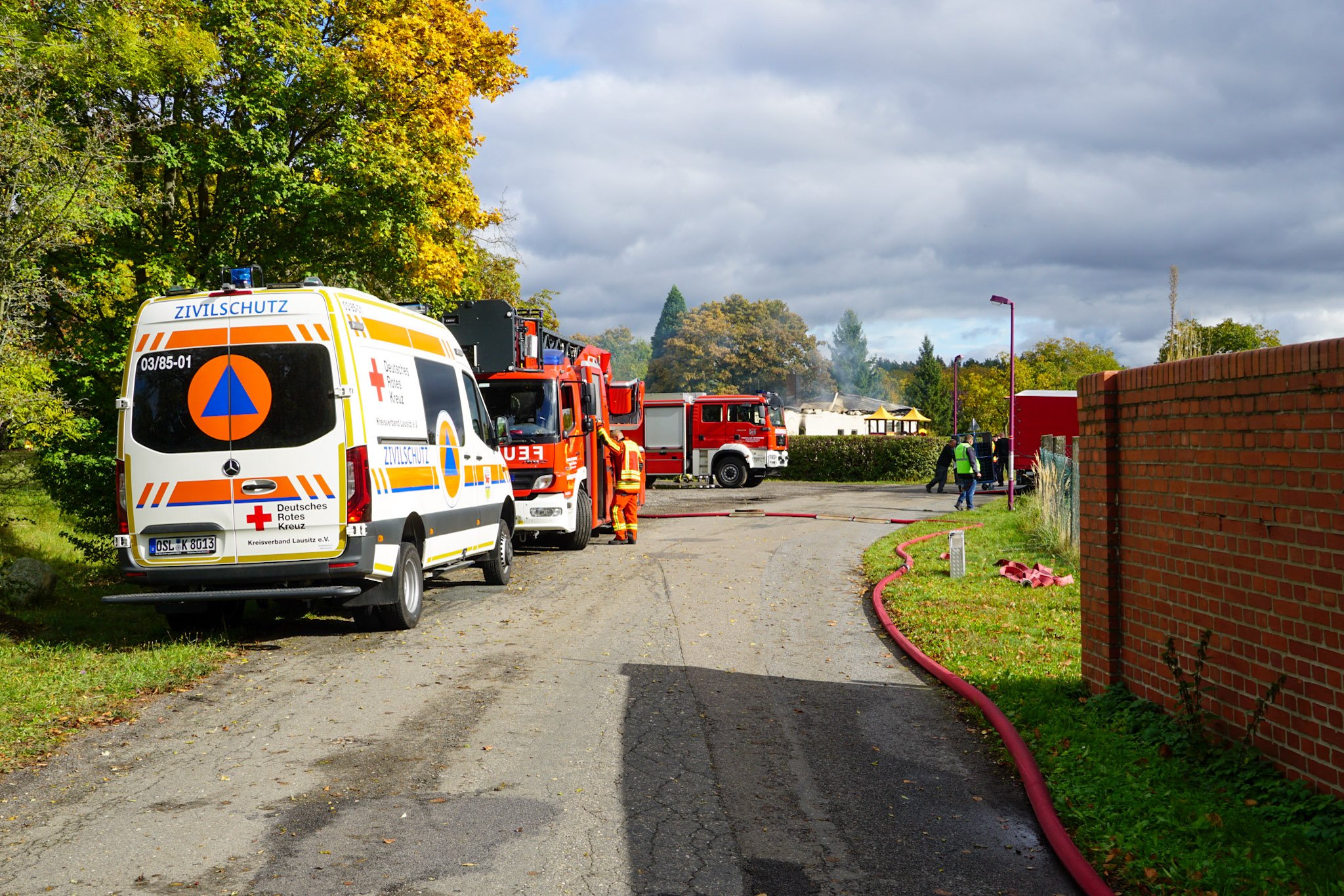 Ein Großbrand hat am Donnerstagmorgen in der Dobristroher Straße in Freienhufen (Großräschen) ein Fitnessstudio weitgehend zerstört. Als die Feuerwehr gegen 6.25 Uhr eintraf, stand das Gebäude bereits lichterloh in Flammen, dichter Rauch stieg auf und das Dach stürzte teilweise ein. 65 Einsatzkräfte mit 14 Fahrzeugen kämpften bis in die Mittagsstunden gegen das Feuer, unterstützt von Baggern, die Glutnester unter der Dachhaut freilegten. Die Feuerwehr verhinderte, dass die Flammen auf Nachbargebäude übergriffen, und warnte Anwohner wegen der starken Rauchentwicklung, Fenster und Türen geschlossen zu halten. Verletzte gab es nach ersten Angaben nicht, doch der Sachschaden ist erheblich. Die Brandursache ist bislang ungeklärt, die Kriminalpolizei ermittelt.