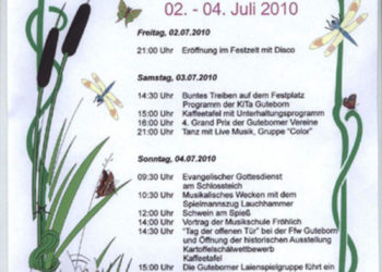 Read moreVom 2. - 4. Juli 2010 findet am Guteborner Schloßteich das diesjährige Kinder- und Heimatfest statt.Eröffnet wird das Festwochenende am...