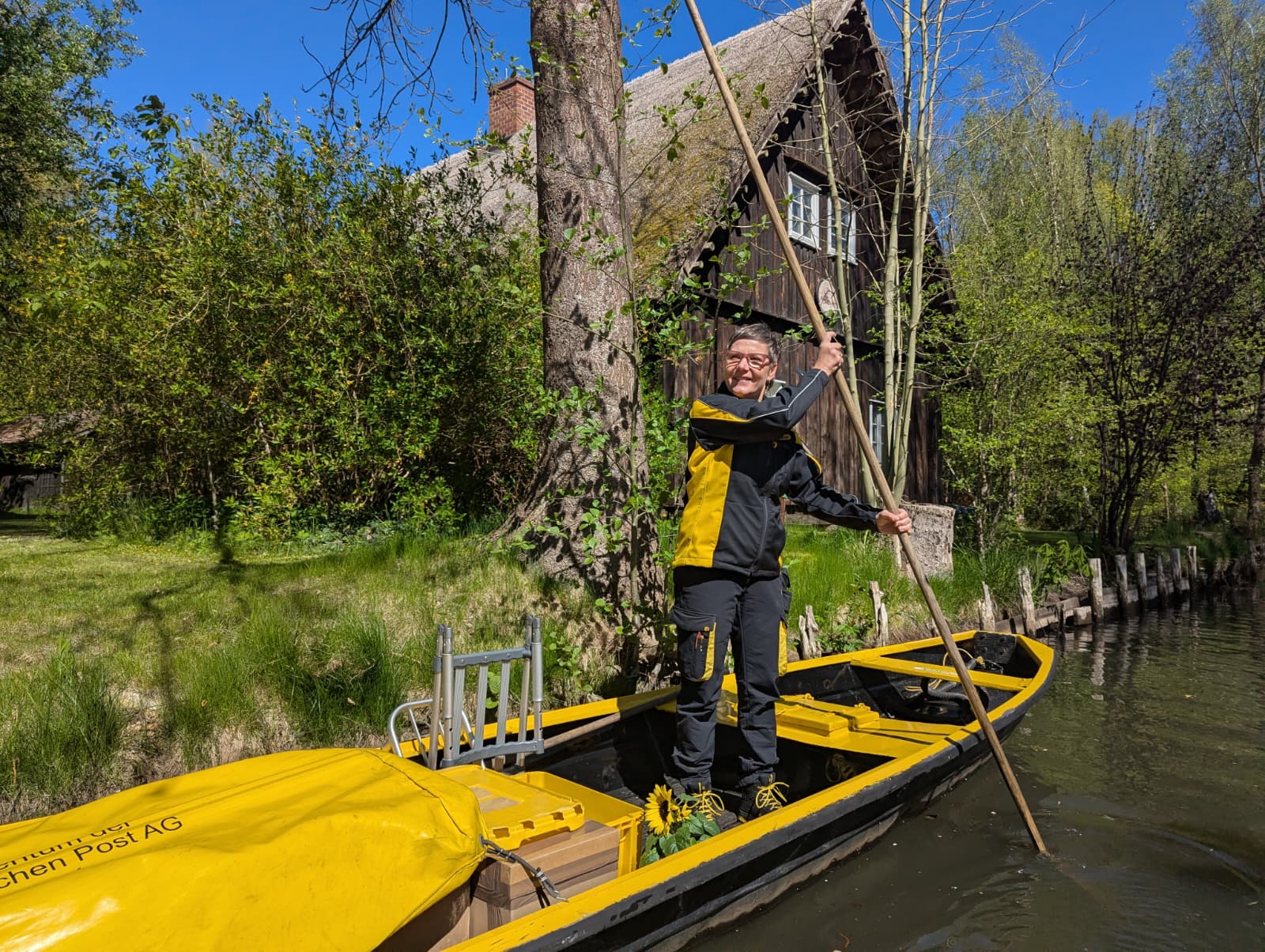 Der Arbeitstag der Zustellerin beginnt laut Deutscher Post zunächst in der Stadt Lübbenau. Dort ist sie am Vormittag mit einem Elektrofahrzeug unterwegs. Gegen Mittag belädt sie ihren Kahn und setzt die Zustellung im Ortsteil Lehde fort. Die rund acht Kilometer lange Strecke legt sie dabei ausschließlich mit Muskelkraft zurück. Während der Tour bietet sie zudem einen mobilen Postservice an. Anwohner können Briefe und Pakete direkt übergeben oder Brief- und Paketmarken erwerben. Die Kommunikation erfolgt laut Unternehmen häufig über kurze Nachrichten am Briefkasten oder persönlich vor Ort.