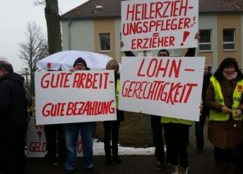 Read moreReichlich 50 Beschäftigte der Arbeiterwohlfahrt in Lübbenau haben am 25. Januar 2017 vor den AWO-Spreewaldwerkstätten für mehr Entgelt und für...