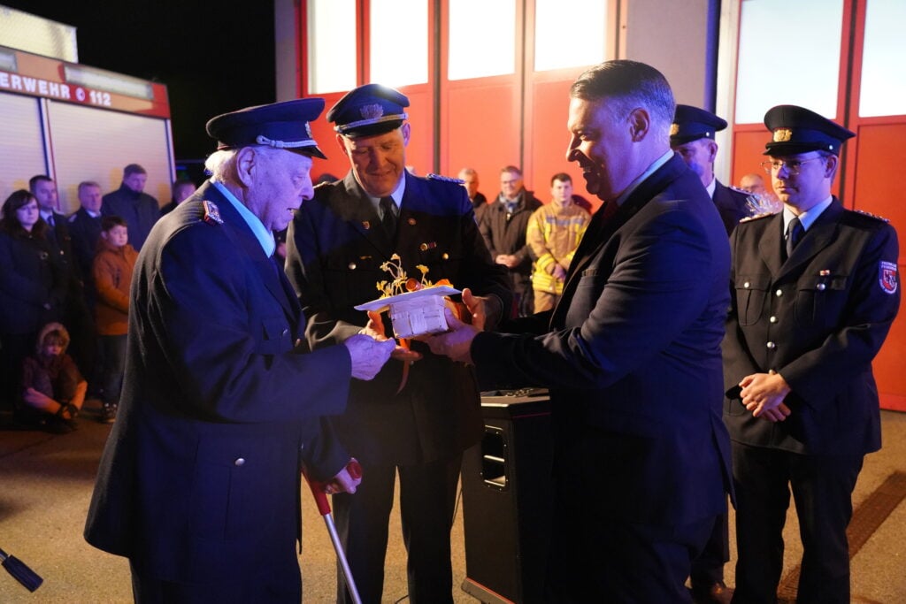 Im Rahmen der Jubiläumsveranstaltung wurde zudem Alfred Richter, Ehrenmitglied der Freiwilligen Feuerwehr Schwarzheide, besonders geehrt. Anlässlich seines 93. Geburtstags erhielt er Anerkennung für seine langjährige Mitgliedschaft und Verdienste. Richter ist seit 1959 Mitglied der Feuerwehr und war in seiner aktiven Zeit als stellvertretender Zugführer des Löschzuges Ost tätig. Mit der Feier würdigte die Stadt Schwarzheide das jahrzehntelange Engagement ihrer Feuerwehrkräfte und die wichtige Rolle des Ehrenamts im Bevölkerungsschutz.