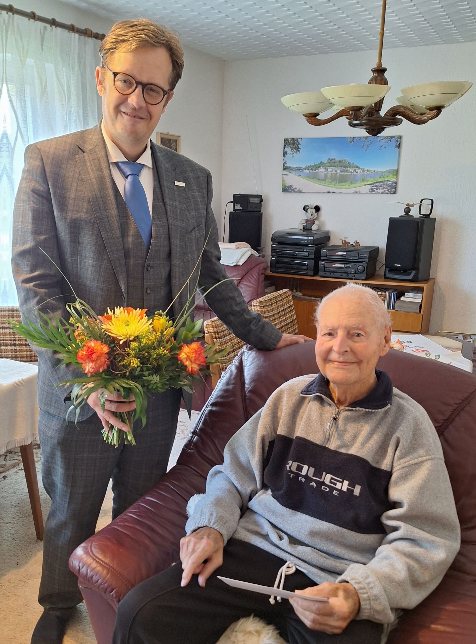 Seinen 100. Geburtstag feierte Oskar Haffner im Marktcafé Senftenberg im Kreise seiner Familie. Zu den Gratulanten gehörte auch Bürgermeister Andreas Pfeiffer, der im Namen der Stadt die Glückwünsche überbrachte. Der Jubilar zeigte sich dankbar für die vielen guten Wünsche und die gemeinsame Feier.