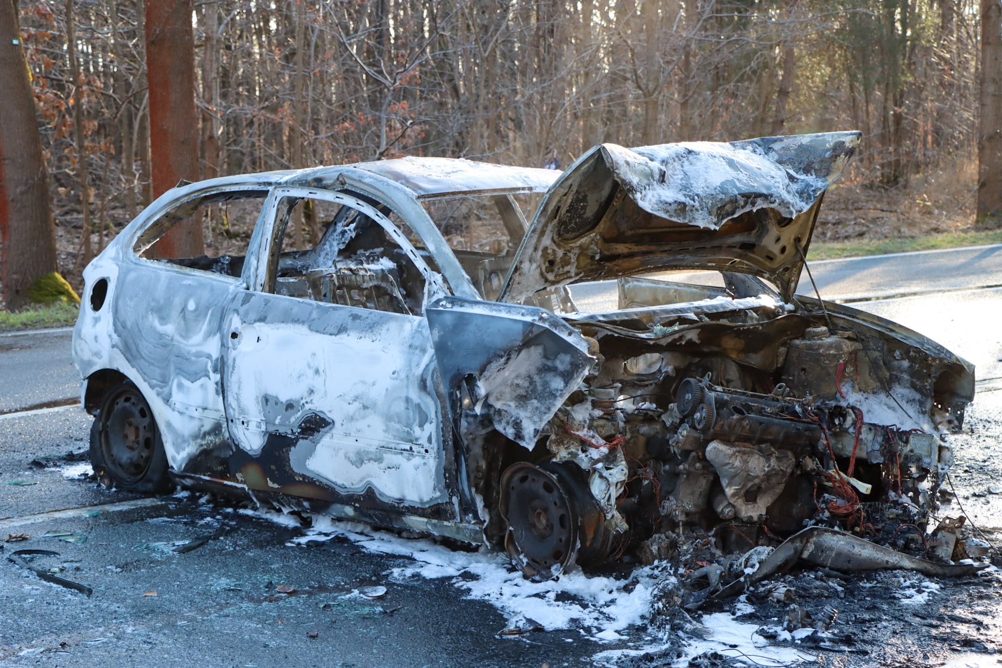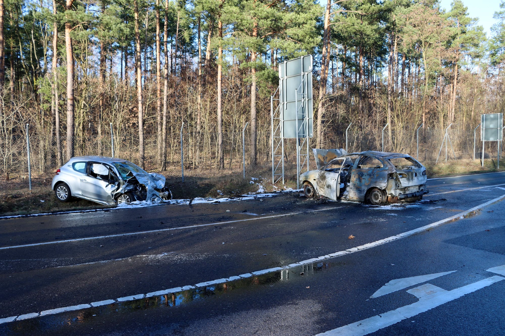 Pkw brennt auf der L60 nach schwerem Frontalzusammenstoß