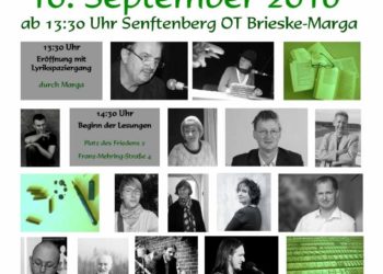 Read moreSenftenberg Grundschule am See 9. September 10:00 Uhr Auftakt zum 4. Lausitzer Lyrikfestival Wie in jedem Jahr soll dem jungen...