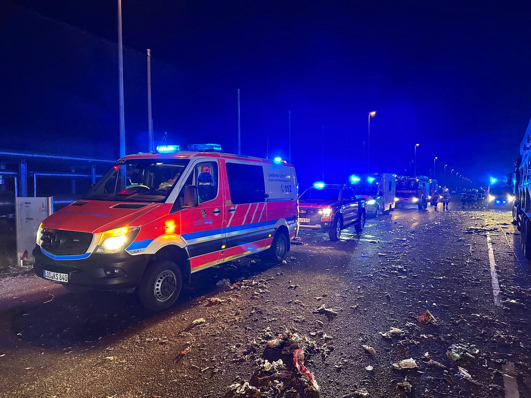Gegen 19:09 Uhr am Samstagabend wurde die Freiwillige Feuerwehr Eisenhüttenstadt mit dem Stichwort „Brandmeldeanlage ausgelöst“ in die Oderlandstraße alarmiert. Beim Eintreffen der ersten Einsatzkräfte bestätigte sich die Lage schnell, denn in der Industriehalle brannte es bereits. Die Sichtverhältnisse in der Halle waren nahezu bei null, sodass eine erste Einschätzung des Schadensausmaßes von außen zunächst unmöglich war.