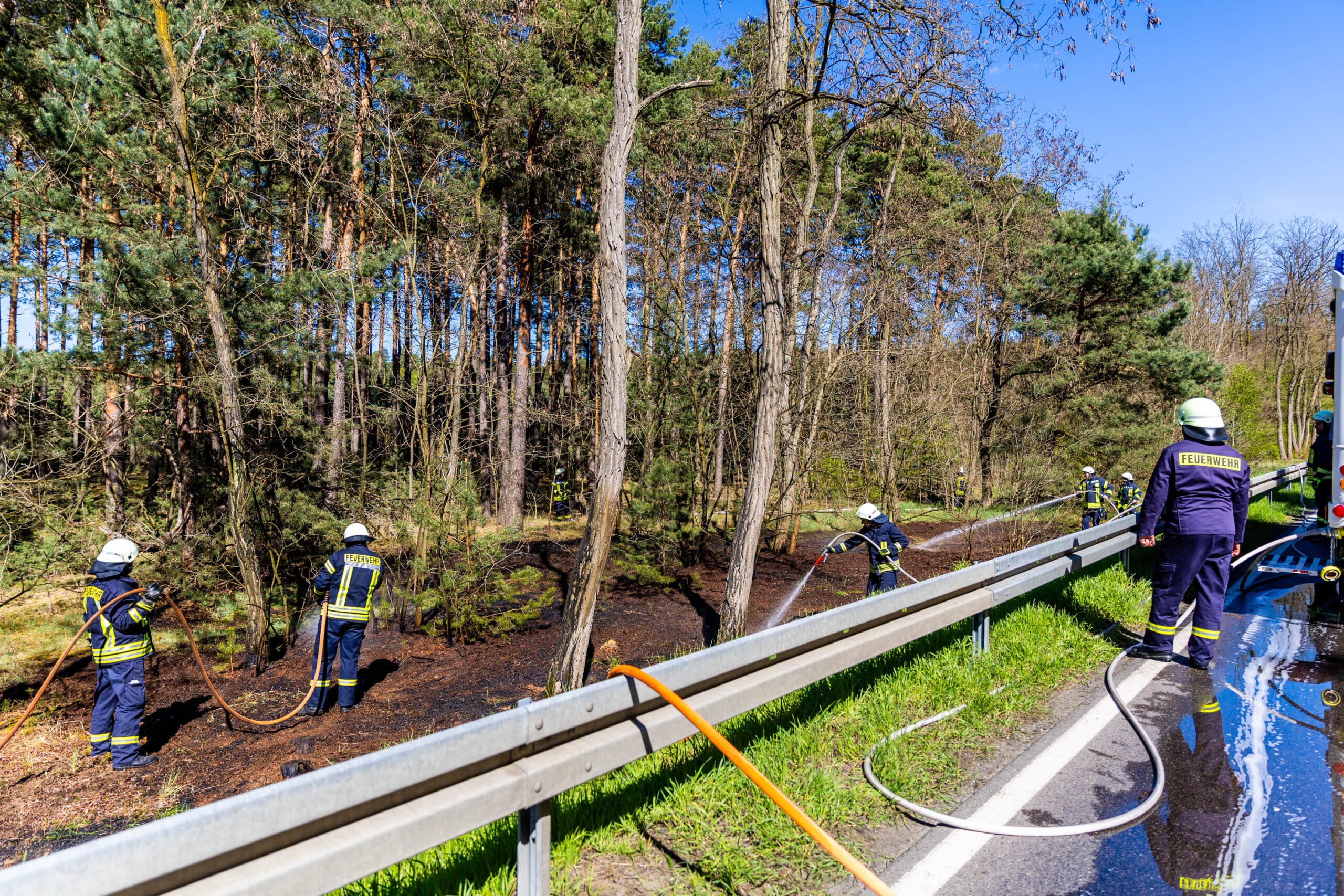 Den Anfang der Einsätze machte gegen 14 Uhr ein Waldbrand bei Groß Jamno im Landkreis Spree-Neiße. Wie der Blaulichtreport Lausitz mitteilt, standen mehrere Quadratmeter Wald neben der Landstraße in Flammen, ehe die Feuerwehr das Feuer unter Kontrolle brachte. Rund eine Stunde später musste die Wehr erneut ausrücken – diesmal rund zwei Kilometer weiter an derselben Straße im Bereich Wiesengrund und Gosda. Dort hatte sich das Feuer nach Angaben des Berichts bereits auf rund 300 Quadratmeter ausgebreitet, bevor die Einsatzkräfte die Flammen löschten.
