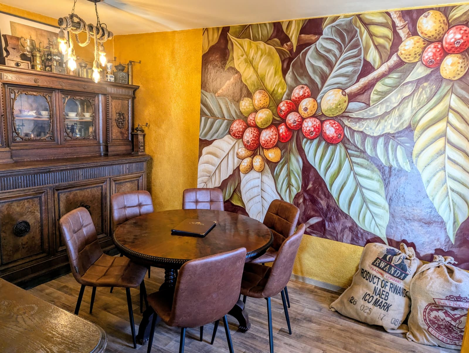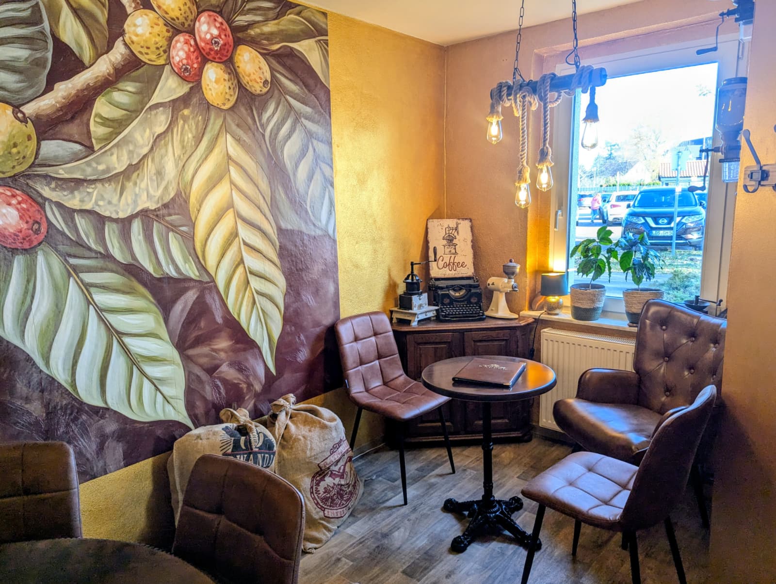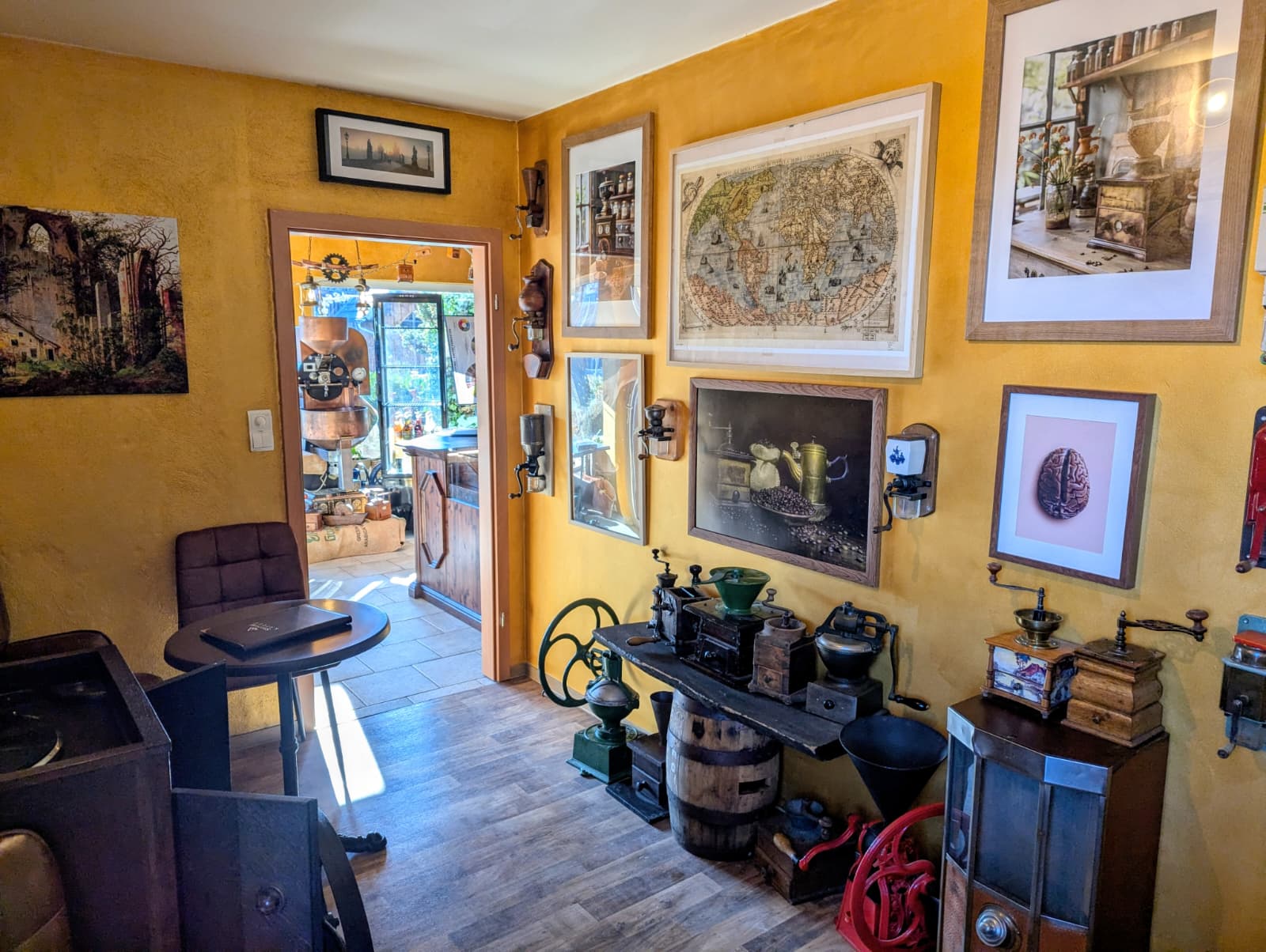 Viel Liebe steckt auch im neuen Ambiente. „Das absolute Highlight finde ich ist die Kaffeemühlensammlung. […] Diese liebevoll zusammengetragene Sammlung abkaufen zu können, das ist das besondere Highlight“, erzählt Namyslo. Farblich lehnt sich das Interieur mit Gold- und warmen Holztönen an den Charakter von Kaffee und Kakao an.