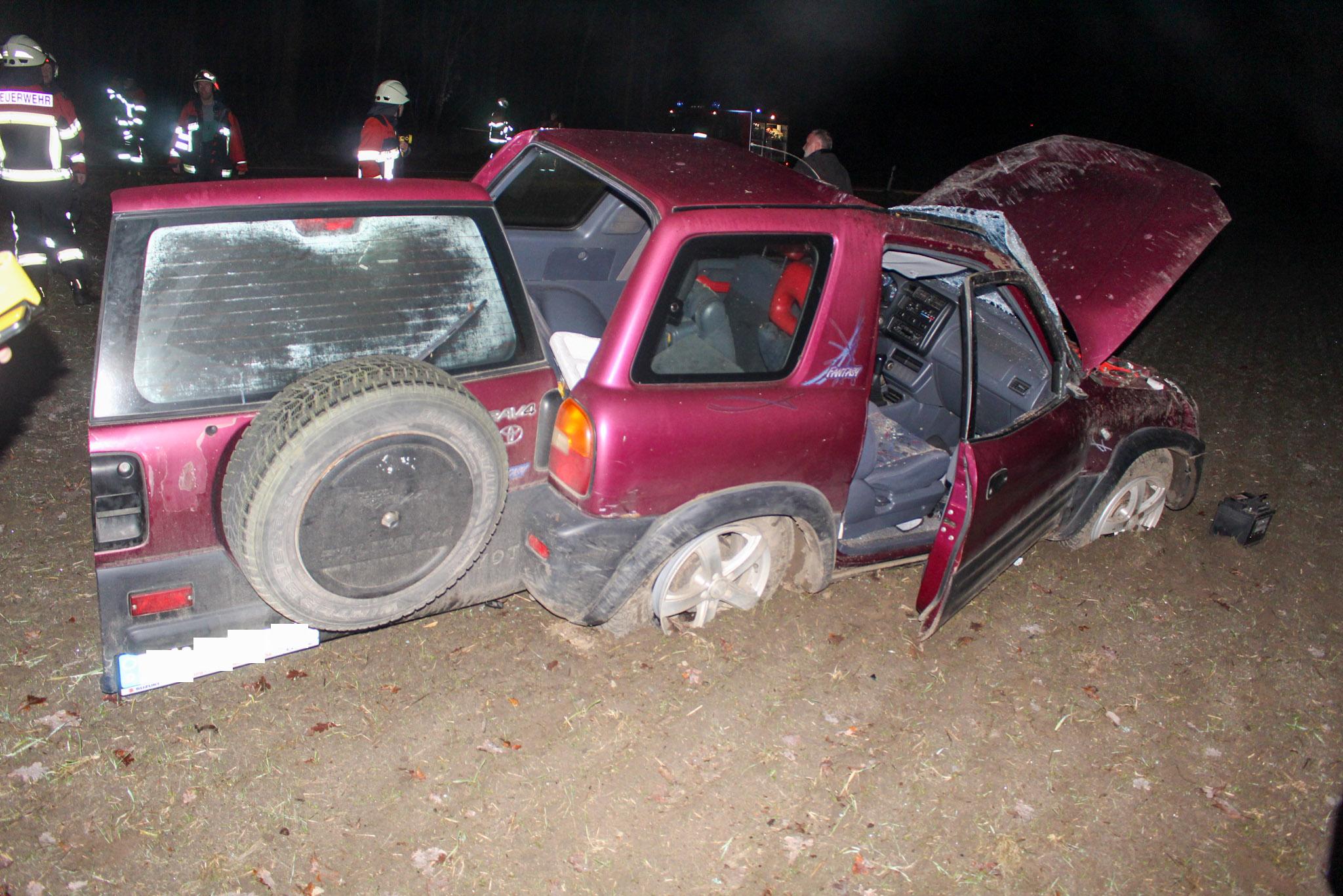 Der verunfallte PKW erlitt durch den Überschlag einen Totalschaden. Das Fahrzeug war nicht mehr fahrbereit und musste von der Unfallstelle geborgen werden.