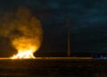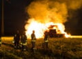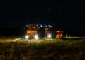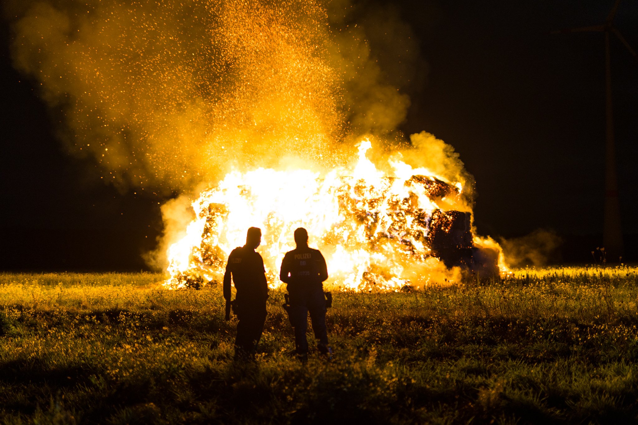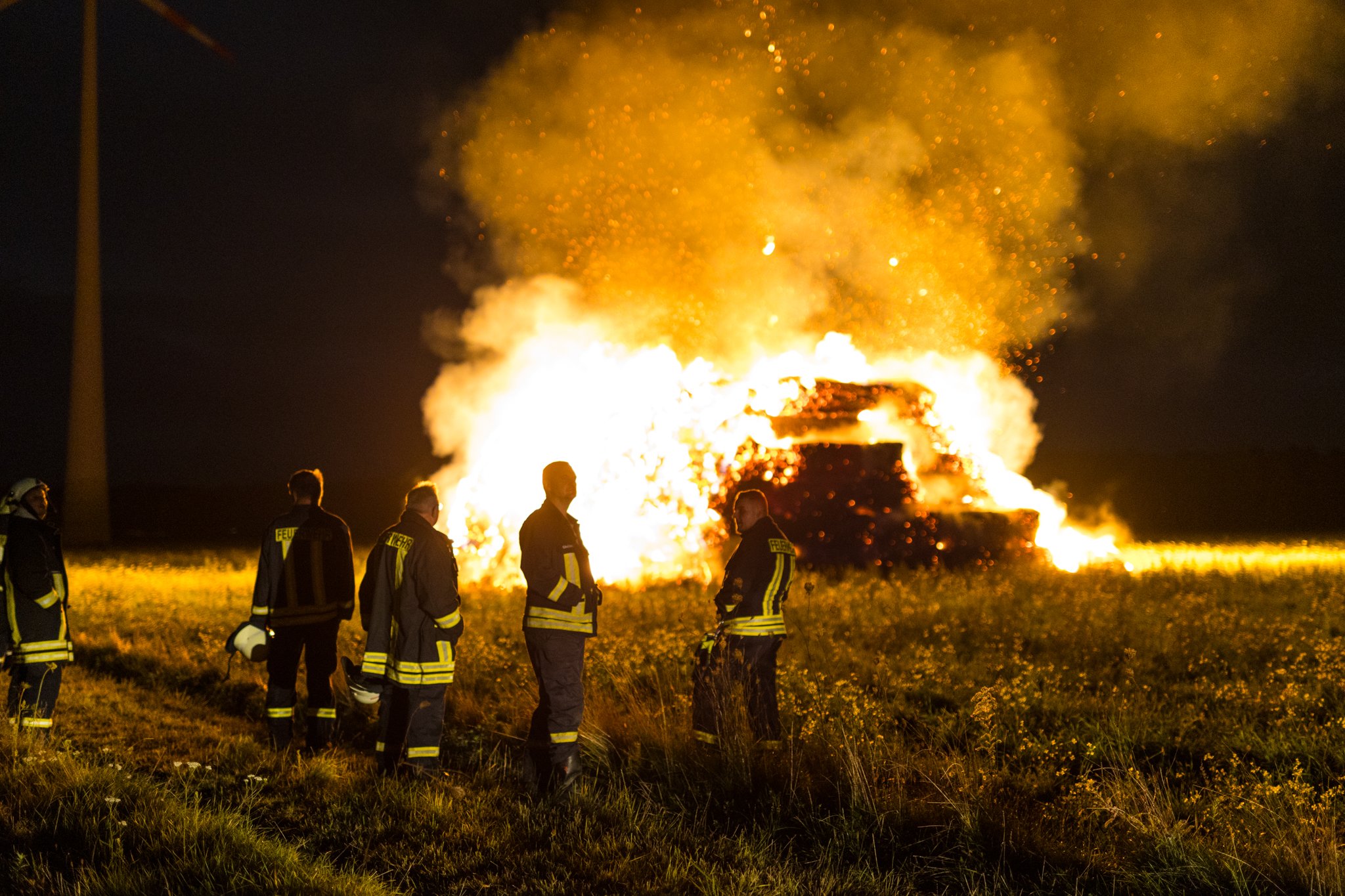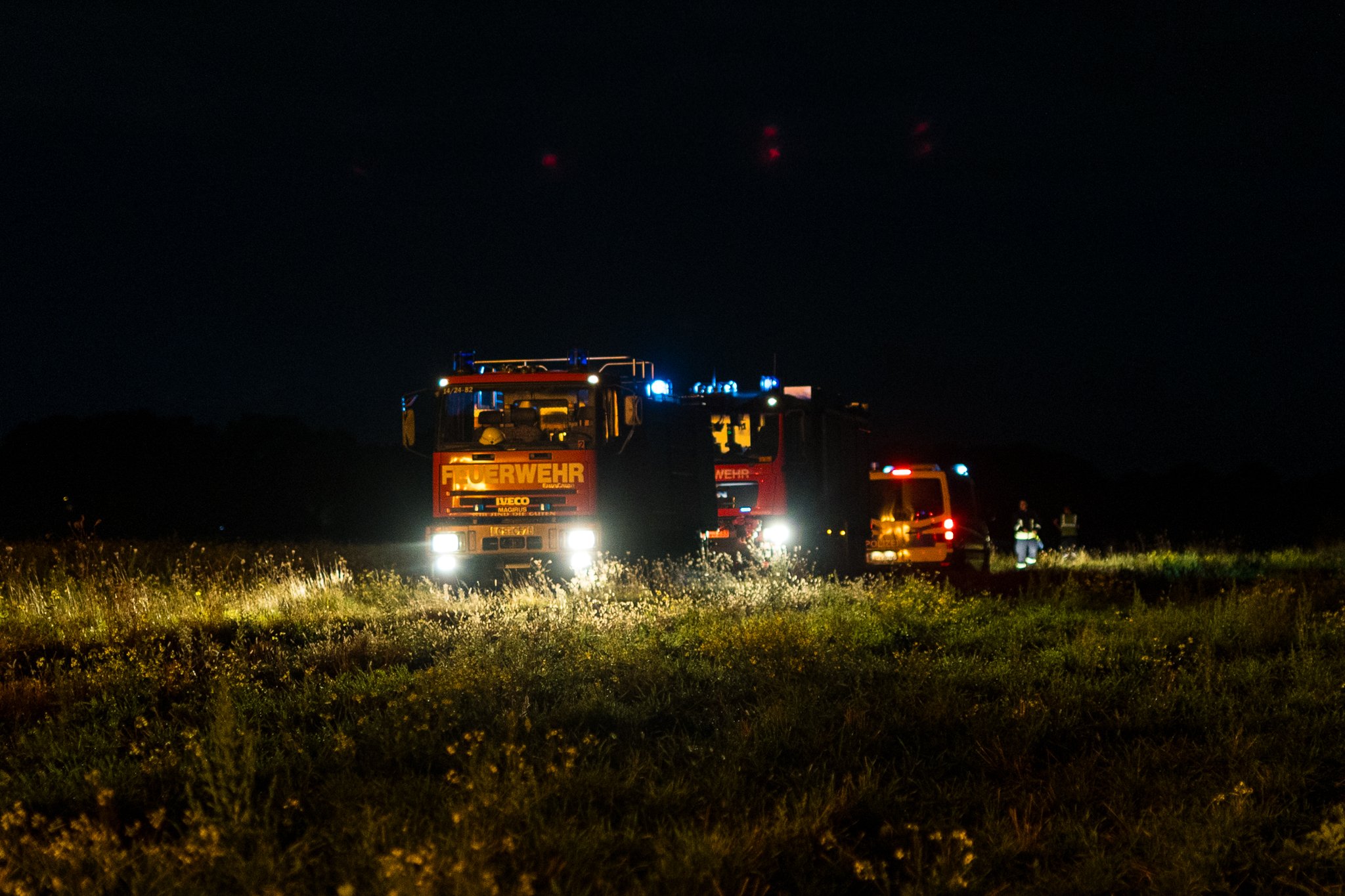 In Groß Schacksdorf-Simmersdorf rückten am späten Montagabend die Feuerwehren aus, nachdem gegen 22:30 Uhr ein Feuerschein auf einem Feld gemeldet wurde. Vor Ort brannte eine große Strohmiete lichterloh und musste kontrolliert abbrennen. Der Verdacht auf Brandstiftung liegt nach Angaben von Blaulichtreport Lausitz nahe. Noch in der Nacht suchten Landes- und Bundespolizei mit zahlreichen Kräften die Umgebung nach möglichen Verdächtigen ab, während die Flammen über mehrere Stunden loderten.