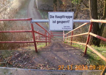 Read moreDurch die Stadtverwaltung Guben ist die Haupttreppe am Verbindungsweg zwischen Cottbuser Platz und Grünstraße zum Bahnhof gesperrt worden (im Gubener...