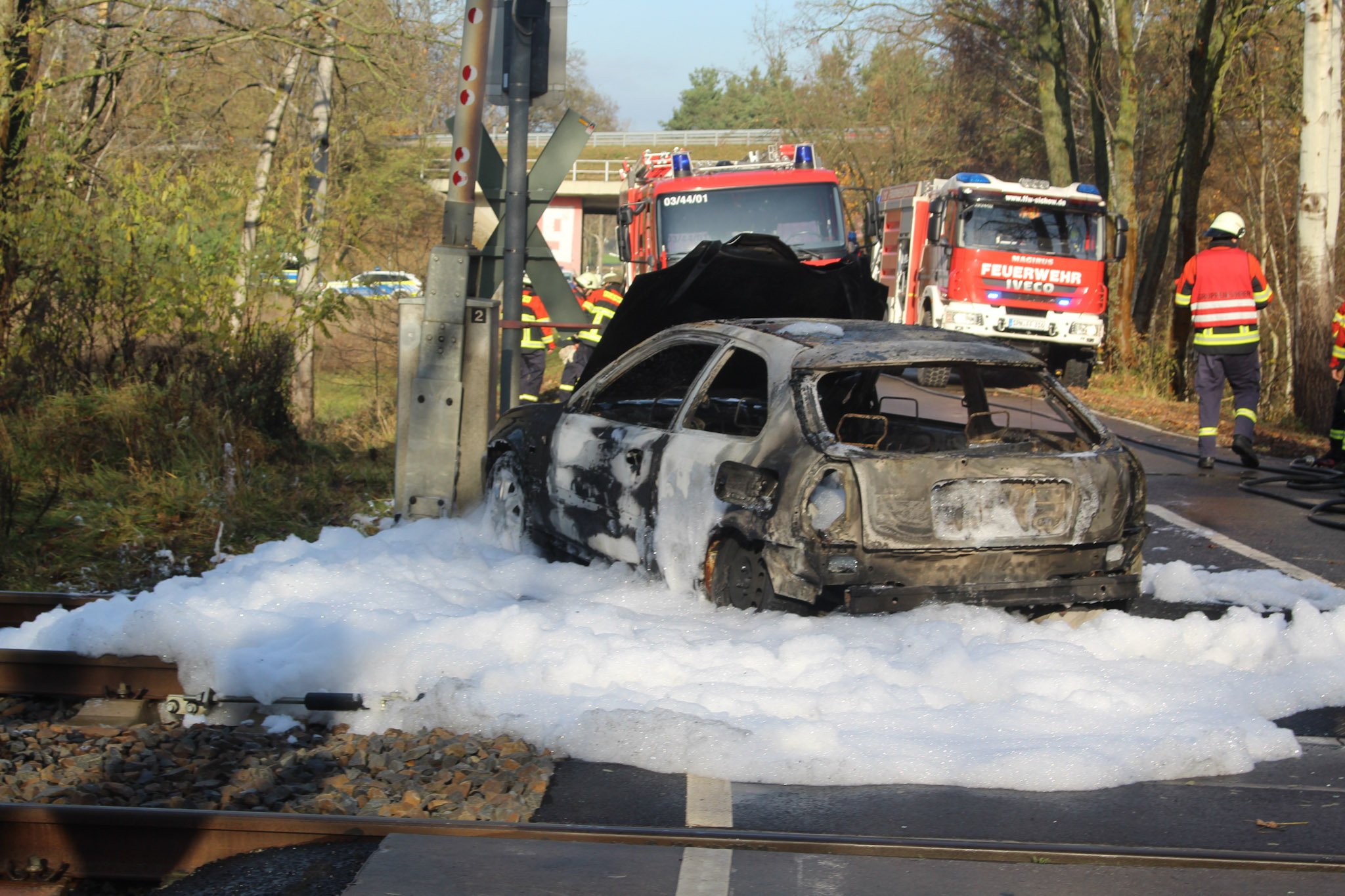 Auf der Kreisstraße 7132 zwischen Krieschow und Wiesendorf ist am Sonntagvormittag ein Auto auf einem Bahnübergang der Strecke Cottbus–Calau in Brand geraten. Wie Blaulichtreport Lausitz mitteilte, war das Feuer gegen 11:04 Uhr gemeldet worden. Der Fahrer konnte sich rechtzeitig in Sicherheit bringen und blieb unverletzt. Die Bahnstrecke war für die Dauer des Einsatzes zeitweise gesperrt.