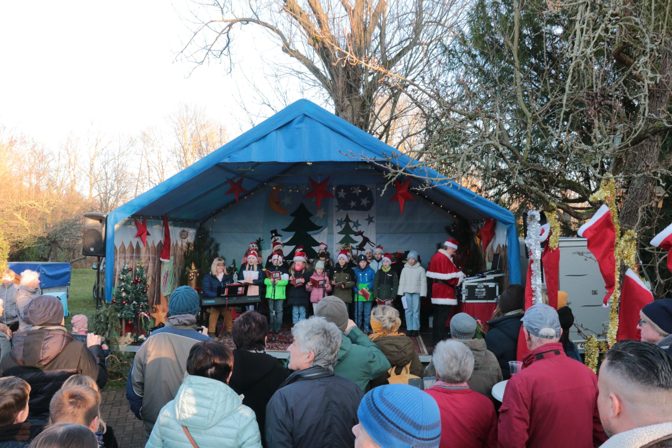 Auf der Bühne sorgt ein abwechslungsreiches Programm für Unterhaltung. Erstmals findet ein Stollenanschnitt durch die Bäckerei Kschiwan statt. Weiterhin treten das Duo Geschwisterherz sowie Marikas Kindertanzakademie vom Happy-Bibo-Verein auf.