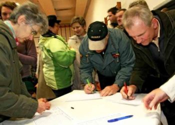 Auf dem heutigen Sternmarsch der vom Braunkohlebergbau bedrohten Dörfer bei Kerkwitz werden die Teilnehmer Neujahrskarten an alle Abgeordneten des Brandenburger...