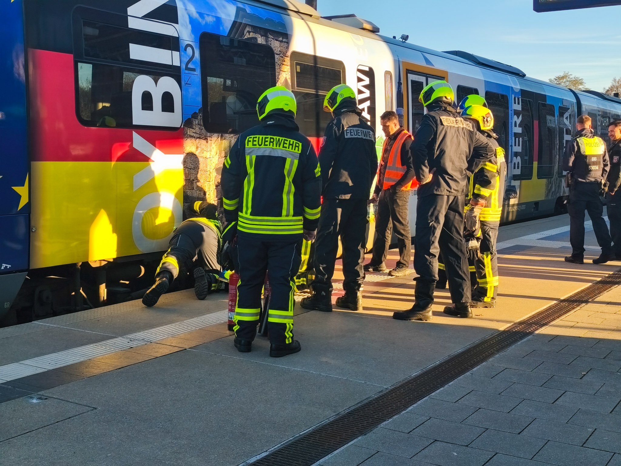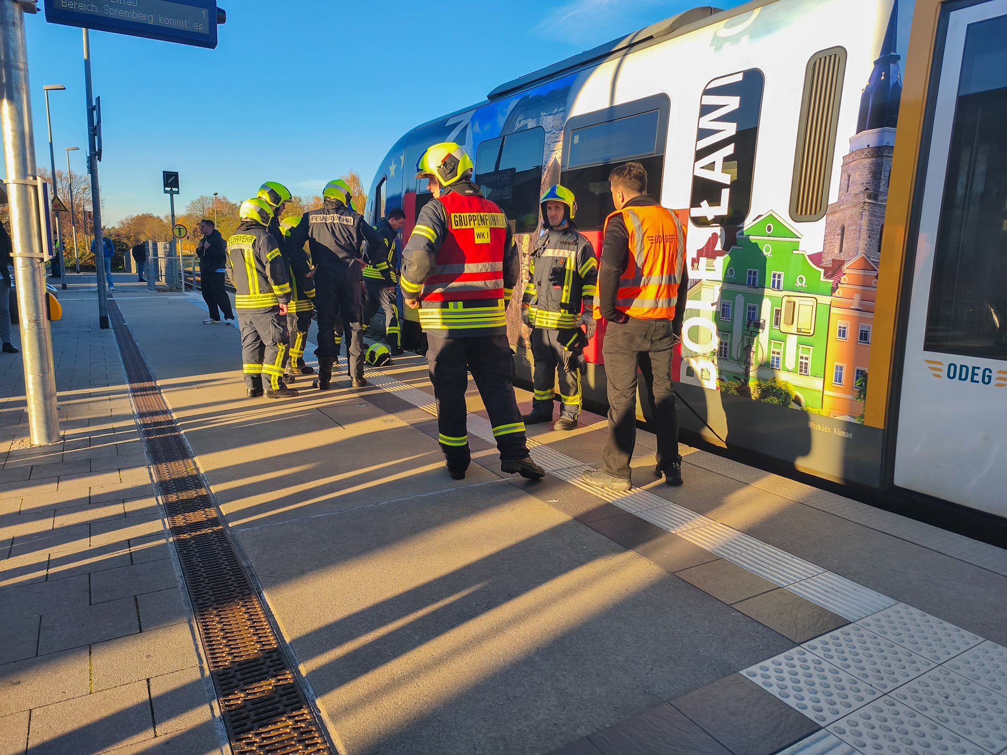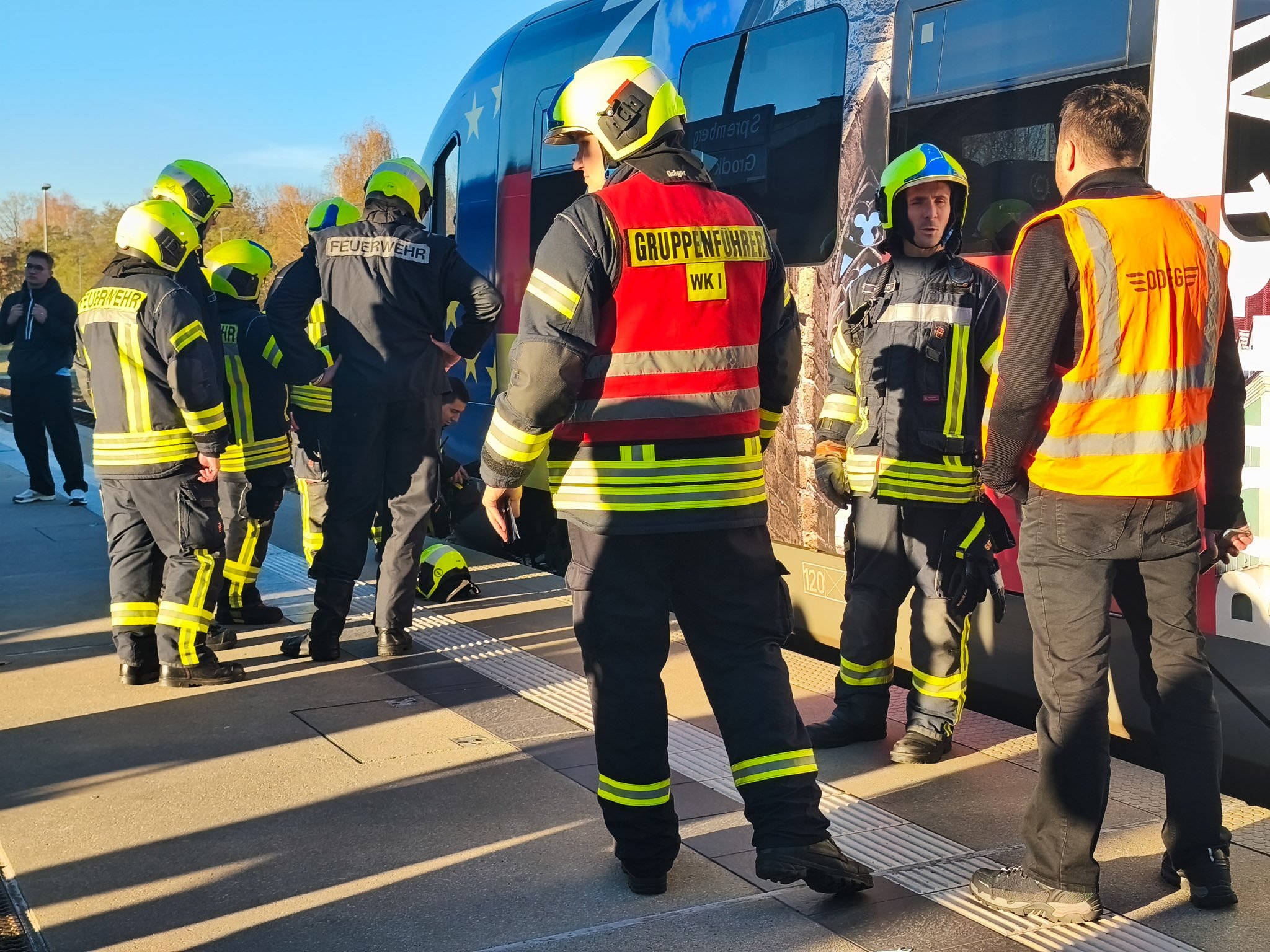 Heute Nachmittag kam es am Bahnhof in Spremberg zu einem Feuerwehreinsatz, nachdem an einem einfahrenden Zug eine starke Rauchentwicklung festgestellt worden war. Wie Blaulichtreport Lausitz von dir Ort berichtete, konnte das Zugpersonal schnell alle Fahrgäste evakuieren und erste Löschversuche einleiten. Beim Eintreffen der Feuerwehr war kein offenes Feuer mehr sichtbar. Die Einsatzkräfte kontrollierten den betroffenen Bereich mit einer Wärmebildkamera, um mögliche Glutnester auszuschließen. Auch die Bundespolizei war vor Ort und nahm Ermittlungen zur Ursache der Rauchentwicklung auf. Die Reisenden wurden mit Ersatzbussen nach Cottbus weitertransportiert.