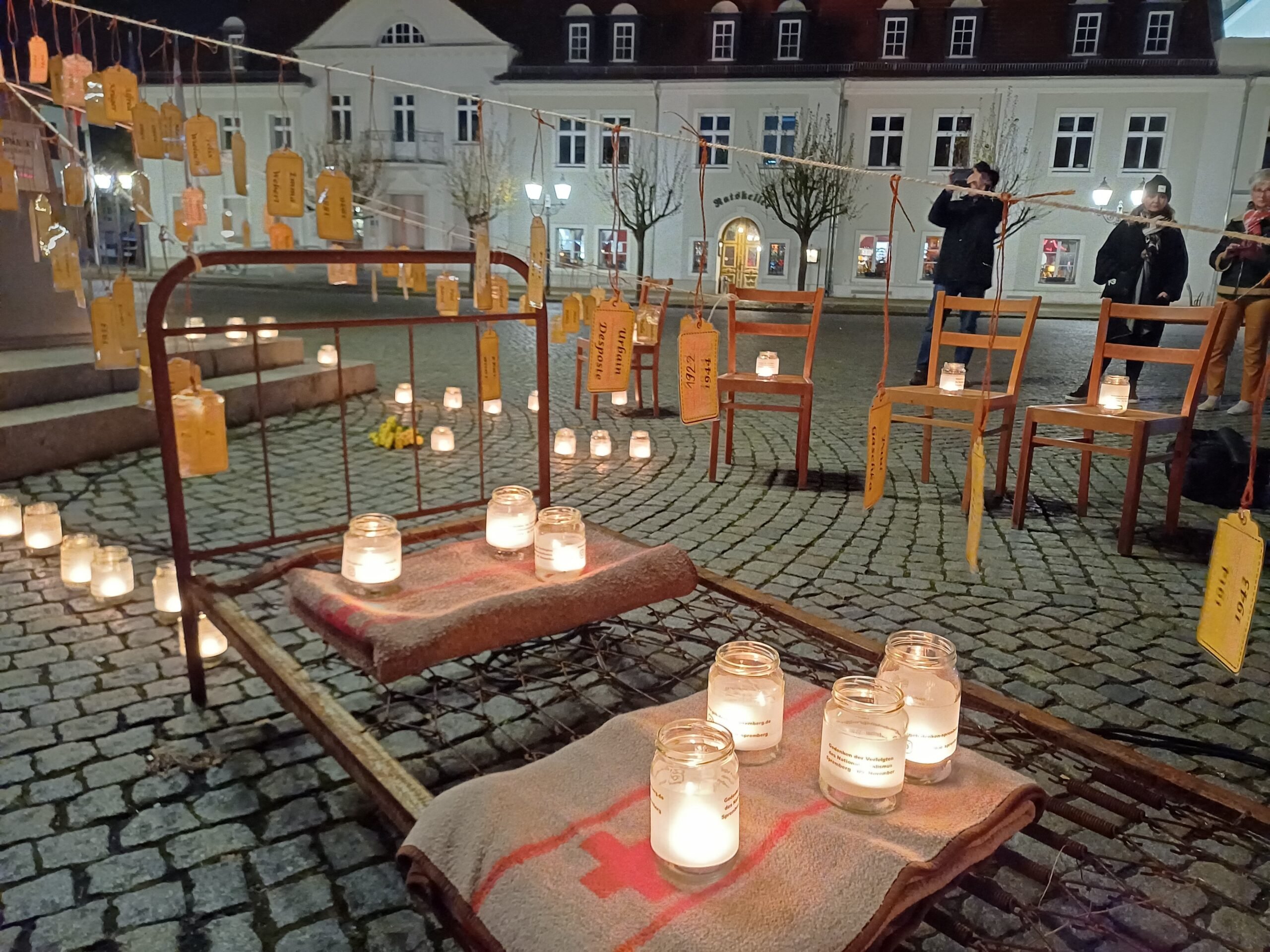 Am Sonntag, dem 9. November, fand auf dem Marktplatz in Spremberg eine Gedenkveranstaltung zu Ehren der Opfer der Novemberpogrome 1938 statt. Dabei wurde an die bisher bekannten verfolgten Personen erinnert, die in der Zeit des Nationalsozialismus in Spremberg lebten oder aus der Stadt stammten. Etwa 150 Sprembergerinnen und Spremberger nahmen an der Veranstaltung teil. Seit dem Jahr 2021 wird dieses öffentliche Gedenken jährlich durchgeführt. In diesem Jahr wurden 194 Namen verlesen, die an die Schicksale der Betroffenen erinnern. Ergänzt wurde das Programm durch ein Theaterstück, das sich mit der Geschichte der Zwangsarbeiterinnen und Zwangsarbeiter in der Region während des Dritten Reichs auseinandersetzte.
