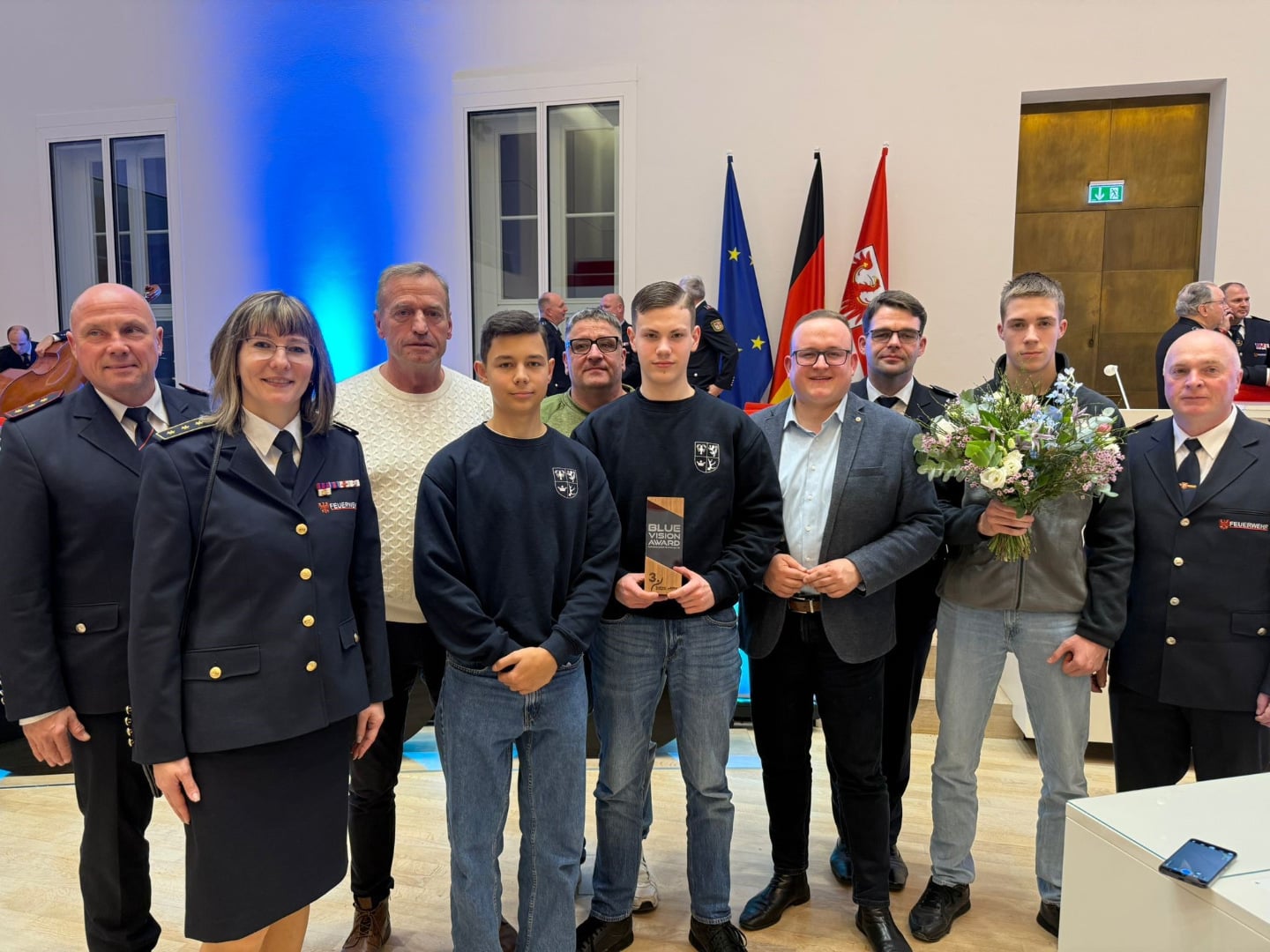 Die Berufsorientierende Oberschule (BOS) in Spremberg/Grodk ist am 27.11.2025 im Landtag Brandenburg im Rahmen des von der CDU-Landtagsfraktion initiierten Projektes „Feuerwehr macht Schule“ für das Projekt „Wahlpflichtfach Feuerwehr“ mit einem 3. Platz ausgezeichnet worden. Vertreter der Schule, der Feuerwehr und des Kreisfeuerwehrverbandes, die die Ausgestaltung des Wahlpflichtfaches an der BOS im Ehrenamt realisieren, nahmen an dieser Ehrung im Potsdamer Landtag teil.