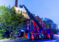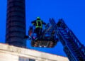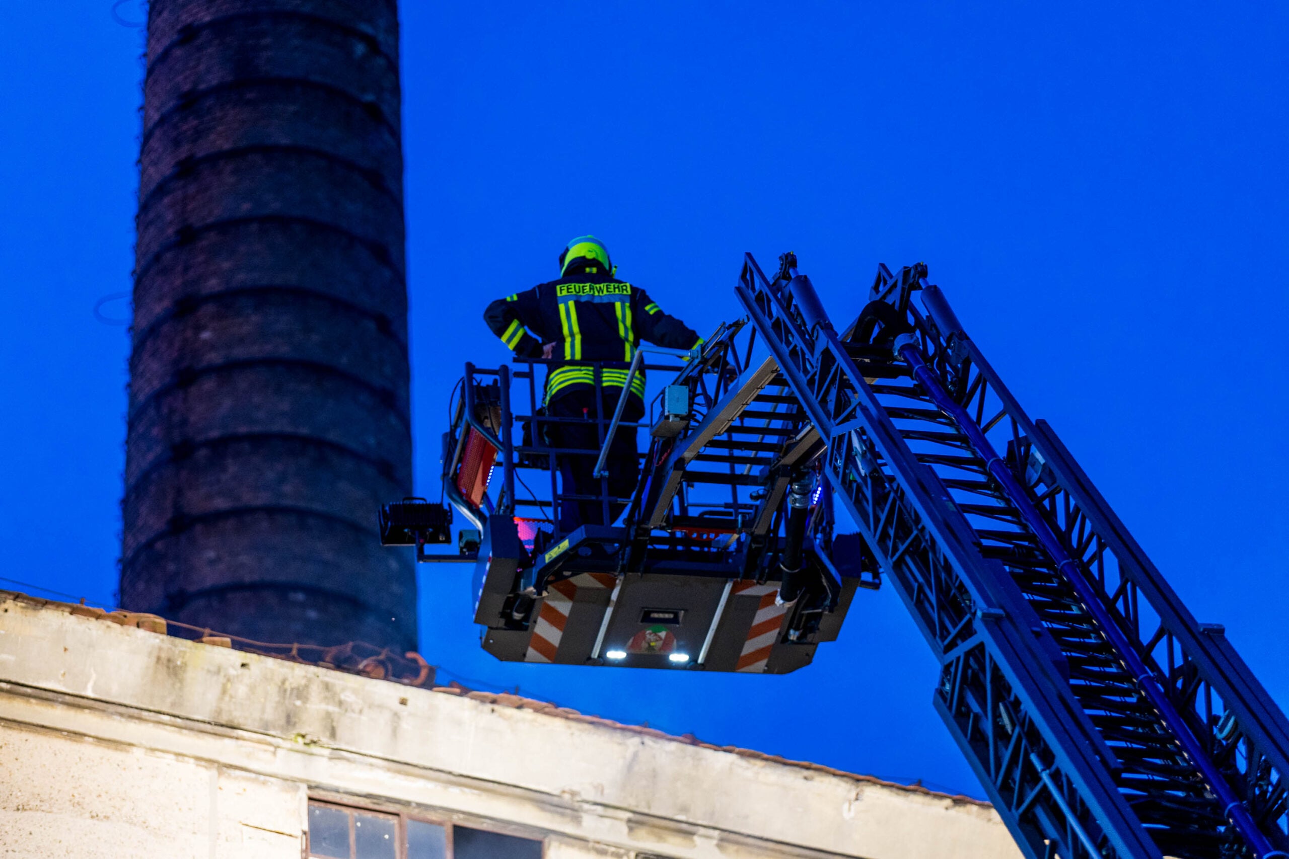 Eine besondere Herausforderung stellte der bauliche Zustand des Gebäudes dar. Zahlreiche Löcher in den Böden, Metallträger auf Kopfhöhe und ein komplett stromloser Treppenflur machten den Einsatz für die Kameraden gefährlich. Die Drehleiter wurde daher gezielt eingesetzt, um die Einsatzstelle auszuleuchten und den Kräften eine sichere Orientierung im Inneren zu ermöglichen.