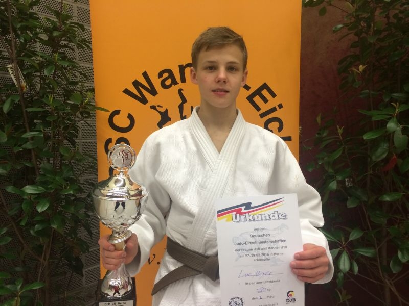 Der Deutsche Meister des Vorjahres Luc Meyer ging diesmal zwei Gewichtsklassen höher an den Start und schaffte wieder den Sprung in das Finale. Nach Siegen über den Anhaltiner Töpfer, den Bayern Wodnitzki und den für Nordrhein-Westfalen startenden Weckerle musste Luc im Kampf um den Einzug in das Finale gegen einen der Favoriten antreten. Gegen Falk Biedermann von den Judo Crocodiles entwickelte sich ein harter Kampf, in dem der Favorit mit zwei Bestrafungen den Spremberger von Anfang an unter Druck setzte. 30 Sekunden vor Kampfende ging Luc mit einer Finte in Führung, die er kurz vor Schluss mit einer zweiten Wertung sogar ausbaute. Damit stand Luc in seinem zweiten Finale einer Deutschen Meisterschaft. Gegen Peter Thomas aus Bayern fehlt am Ende nicht viel. Beiden Kontrahenten gelang es nicht einen technischen Vorteil zu erkämpfen, so dass am Ende eine Bestrafung zu Gunsten des Bayern das Finale entschied. Nach Gold 2015 nun Silber und dies zwei Gewichtsklassen höher. Kampfsportler wissen was dies bedeutet. Eine Wahnsinnsleistung des ASAHI – Judoka.