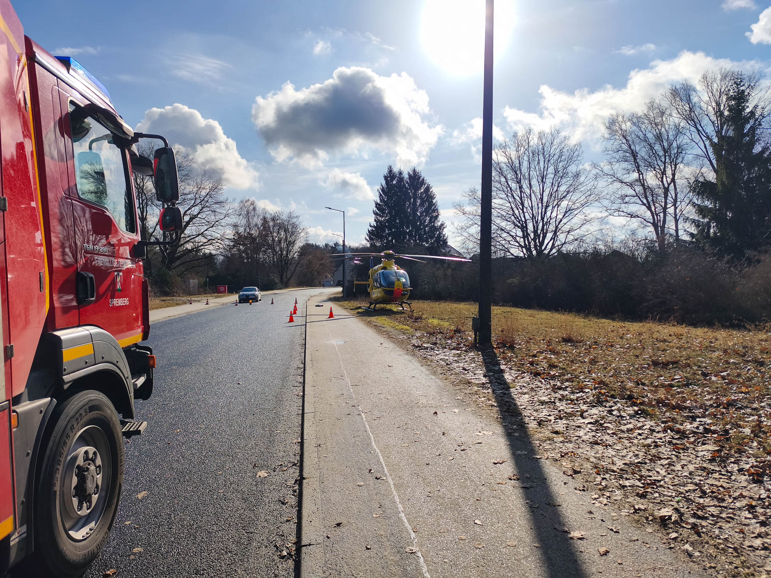 Feuerwehr sichert Unfallstelle – Hubschrauber im Einsatz