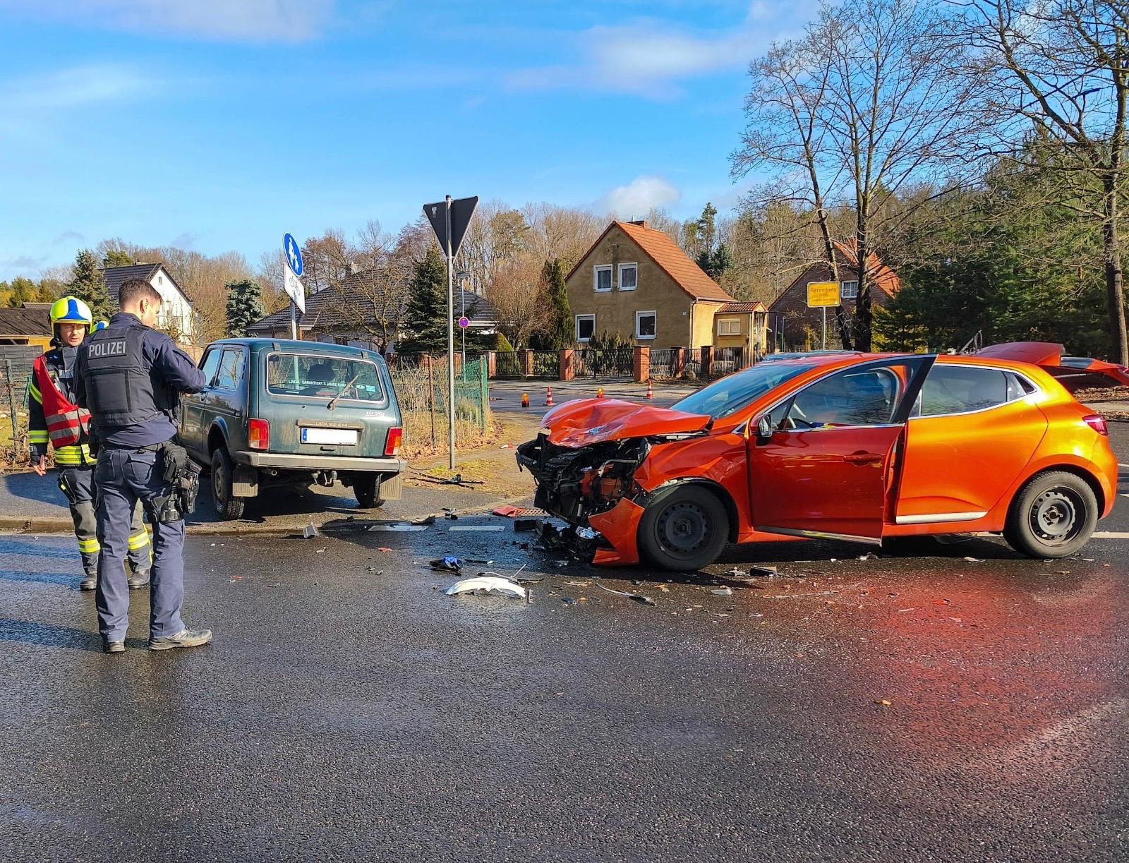 Bei einem Verkehrsunfall im Kreuzungsbereich Kraftwerkstraße und Knappenweg im Spremberger Ortsteil Trattendorf sind am Montagvormittag zwei Menschen verletzt worden. Wie Blaulichtreport Lausitz mitteilte, stießen gegen 10:10 Uhr ein Lada und ein weiteres Auto im Kreuzungsbereich zusammen, die Ursache war zunächst unklar. Beide Insassen wurden vor Ort medizinisch versorgt und anschließend in ein Krankenhaus gebracht. Die Feuerwehr sicherte die Unfallstelle, stellte den Brandschutz sicher und unterstützte bei den Aufräumarbeiten, zudem wurde ein Rettungshubschrauber zur schnellen Notarztversorgung eingesetzt. Der Sachschaden wird auf rund 15.000 Euro geschätzt.