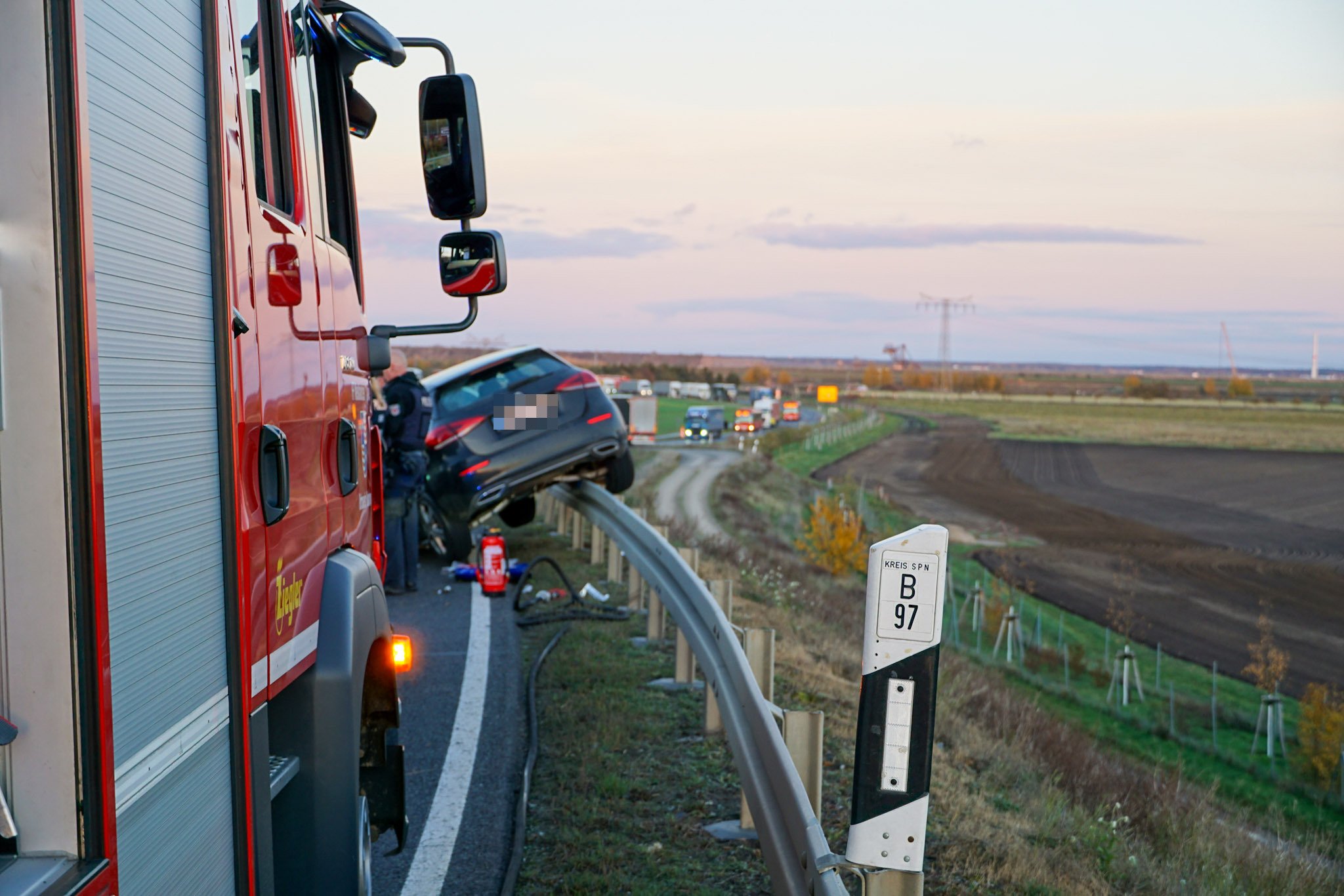 Bei einem Frontalzusammenstoß auf der Bundesstraße 97 bei Bärenbrück sind am Montagnachmittag zwei Menschen verletzt worden. Nach ersten Angaben überholte ein Autofahrer einen Lkw und stieß dabei mit einem entgegenkommenden Wagen zusammen. Auch der überholte Lastwagen wurde in den Unfall verwickelt. Wie der Blaulichtreport Lausitz berichtete, waren Feuerwehr, Rettungsdienst und Polizei im Einsatz.