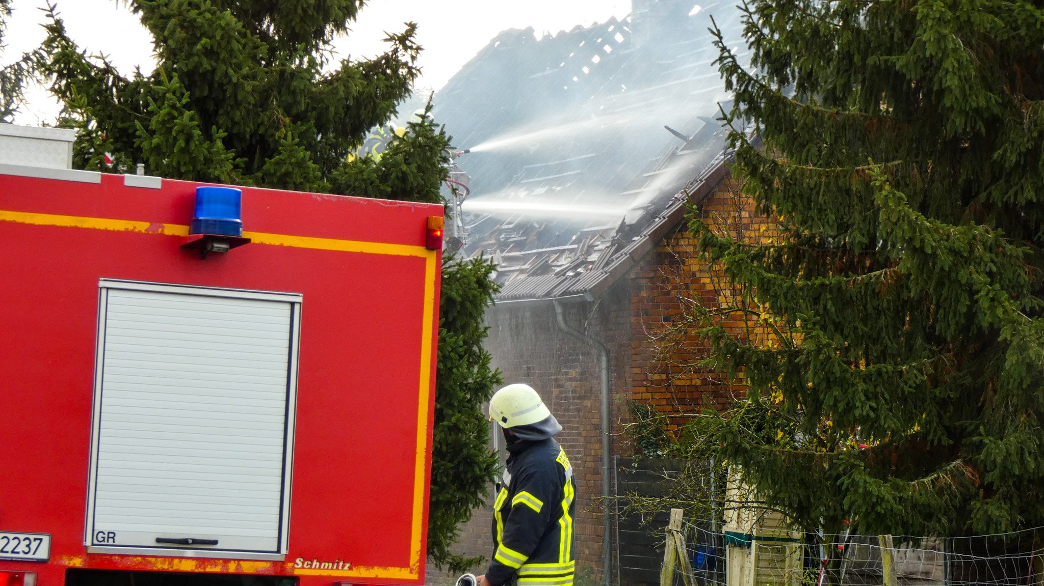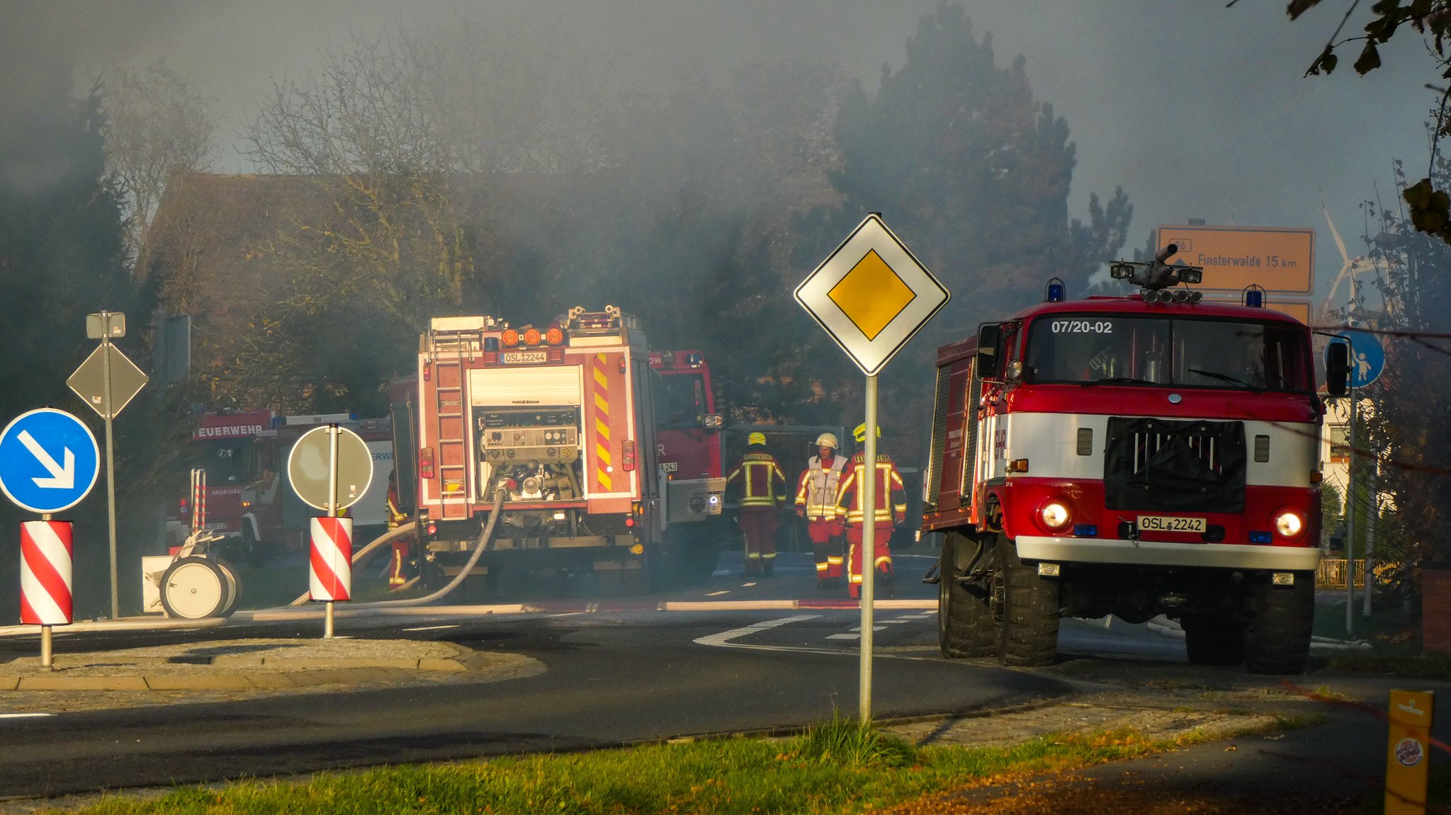 Großräschen – Wormlage: Einsatzkräfte der Feuerwehr, des Rettungsdienstes und der Polizei sind Dienstagmorgen gegen 06:00 Uhr zum Brand am Siedlungsweg gerufen worden. Aus noch unklarer Ursache war ein Einfamilienhaus in Vollbrand geraten, den es von der Feuerwehr bis in die Nachmittagsstunden zu löschen galt. Alle fünf Bewohner hatten das Haus verlassen können. Nach ersten Erkenntnissen wurden ein 23-Jähriger und eine 75-Jährige augenscheinlich leicht verletzt und zur medizinischen Behandlung in ein Krankenhaus gebracht. Ein 53-jähriger Bewohner erlitt hingegen schwere Verletzungen und wurde mit einem Rettungshubschrauber in eine Spezialklinik geflogen. Zum Zweck der Löscharbeiten wurde die Fahrbahn bis in die Mittagsstunden gesperrt. Nach ersten Informationen ist ein technischer Defekt einer Ladestation im Anbau des Einfamilienhauses wahrscheinlich. Die Polizei leitete dazu Ermittlungen ein, um unter anderem die genaue Brandursache feststellen zu können. Der entstandene Sachschaden ist sechsstellig.
