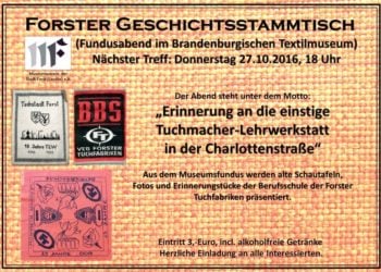Read moreDie nächste Veranstaltung am 27.10.2016 ist ein Fundusabend in unserem Museum, der die Tuchmacherlehrwerkstatt (die Berufsschule der TUFA) in den...