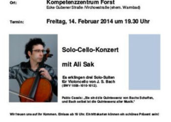 Read moreKonzert der Spitzenklasse am Valentinstag Im Forster Kompetenzzentrum wird Ali Sak drei der sechs Solo-Suiten für Violoncello von J. S....