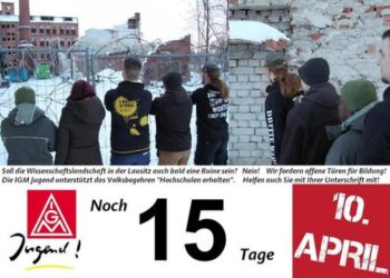 Cottbus 15 Tage bis zum Volksbegehren „Hochschulen erhalten“. Industriegewerkschaft Metall: „Bildung ist eine Investition in die Zukunft“ 26. März 2013