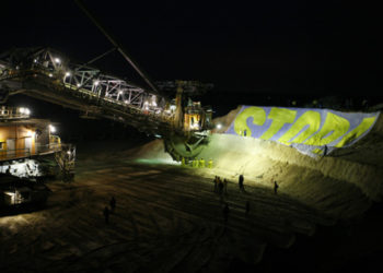Read moreDie 25 Greenpeace-Aktivisten unterstützen mit ihrer heutigen Aktion das Volksbegehren gegen neue Braunkohletagebaue.Ein 35 mal 15 Meter großes Banner vor...