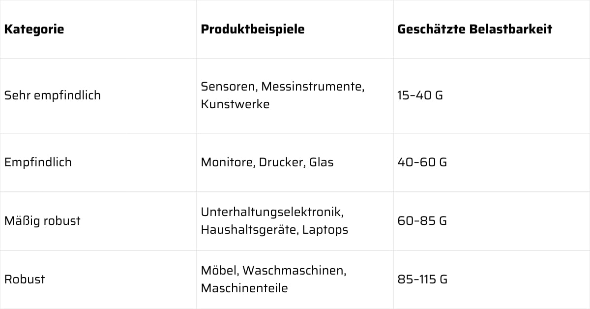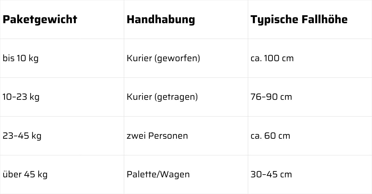 • Lösung: 4 Eckpolster (200 cm² Kontaktfläche) → der Schaum gibt nach und schützt