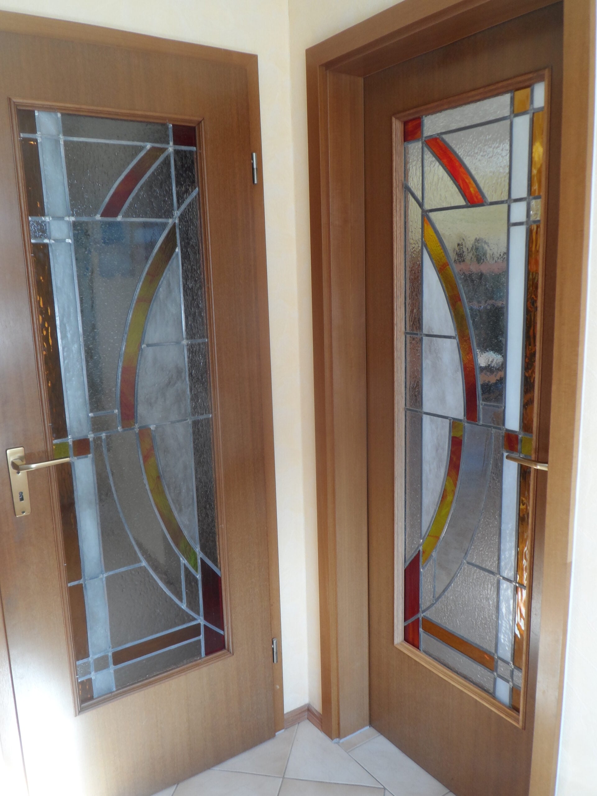 Die Kunstverglasungen des Art-Deco-Glasstudios sind auch für den Einbau in moderne Isolierverglasungen geeignet. Damit lassen sich die dekorativen Glasarbeiten in zeitgemäße Fenster- und Türkonstruktionen integrieren, ohne auf die energetischen Vorteile von Isolierglas verzichten zu müssen.