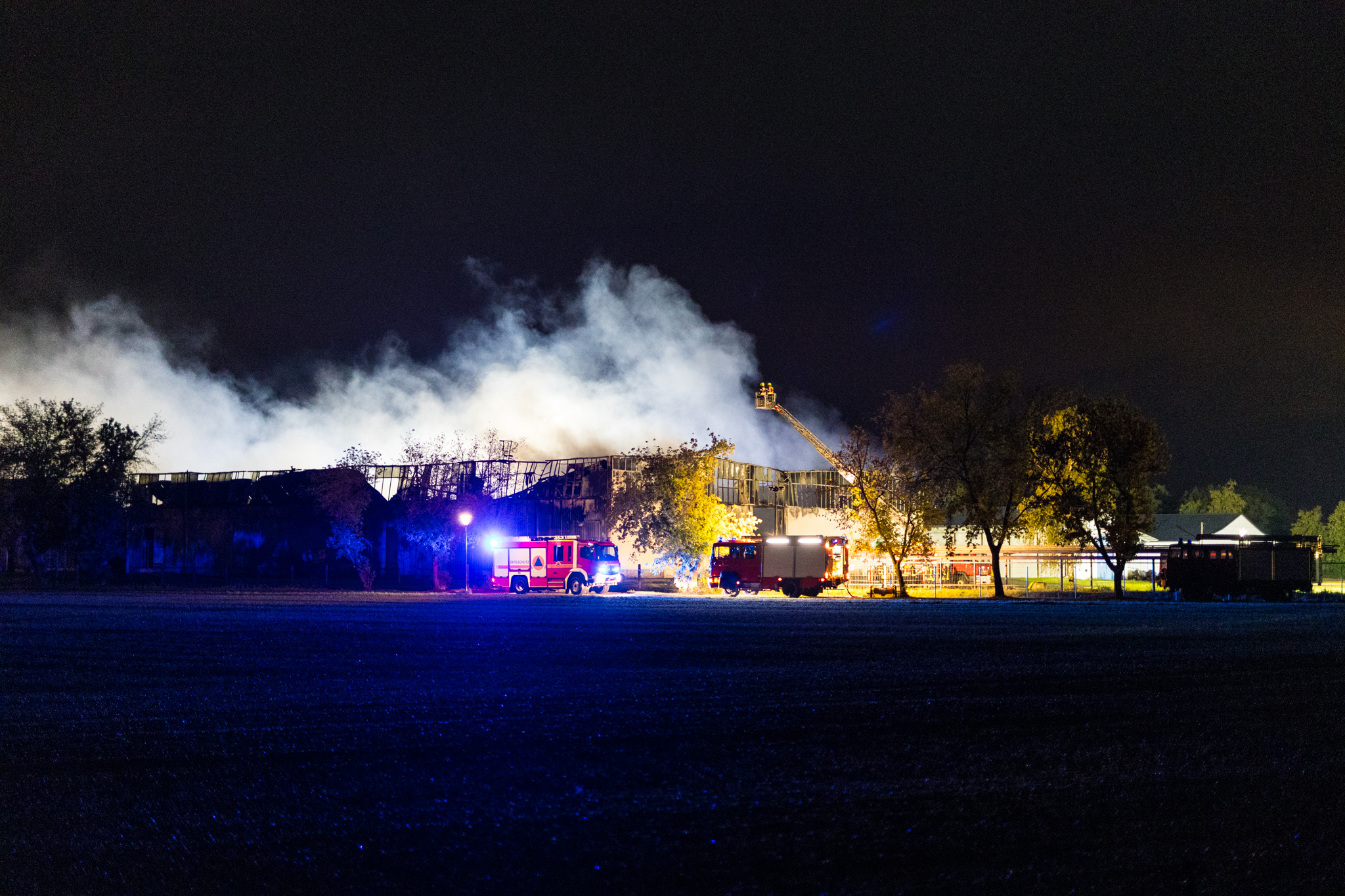 Beim Eintreffen der ersten Einsatzkräfte stand das Gebäude bereits in Vollbrand. Das berichtete das Team von Lausitzreport Lausitz von vor Ort. In der rund 2.500 Quadratmeter großen Halle waren nach ersten Informationen Getreide, Düngemittel und weitere Materialien eingelagert. Aufgrund der hohen Brandlast und der massiven Rauchentwicklung wurde eine umfangreiche Nachalarmierung ausgelöst. Am Abend waren rund 120 Einsatzkräfte aus mehreren Wehren des Amtes Röderland, aus Bad Liebenwerda, Elsterwerda und dem Amt Plessa im Einsatz. Unterstützt werden sie durch Spezialtechnik, darunter drei Hubrettungsfahrzeuge und ein Bagger, der per Schwertransport zur Einsatzstelle gebracht wurde.