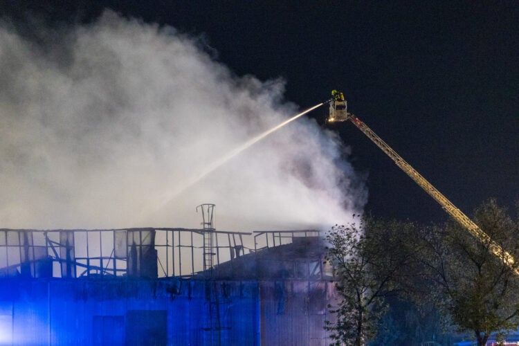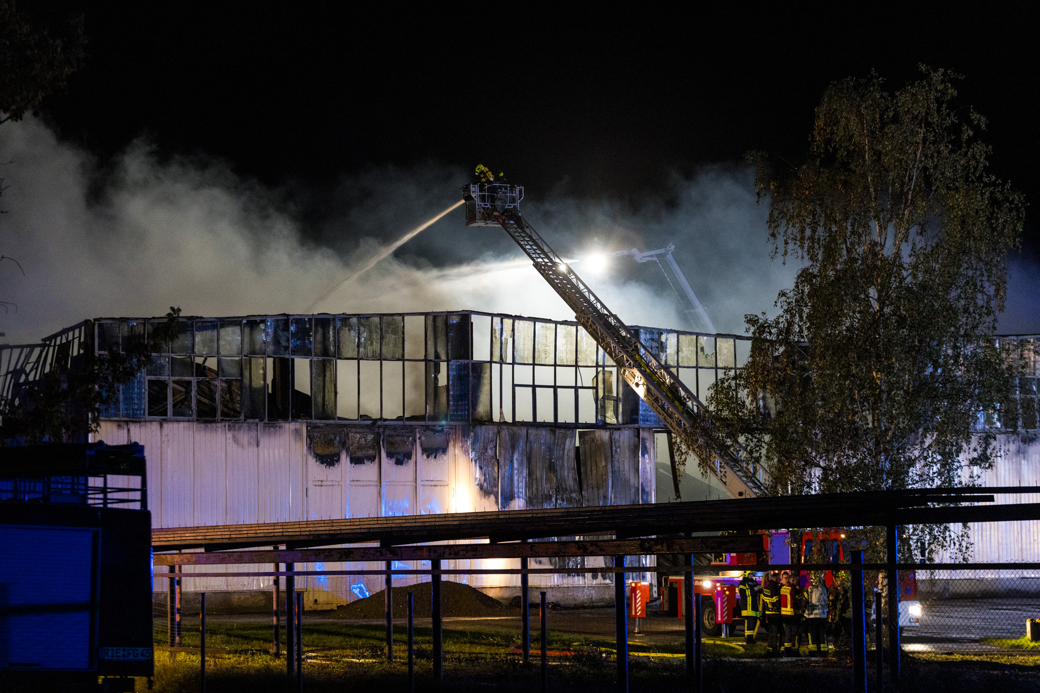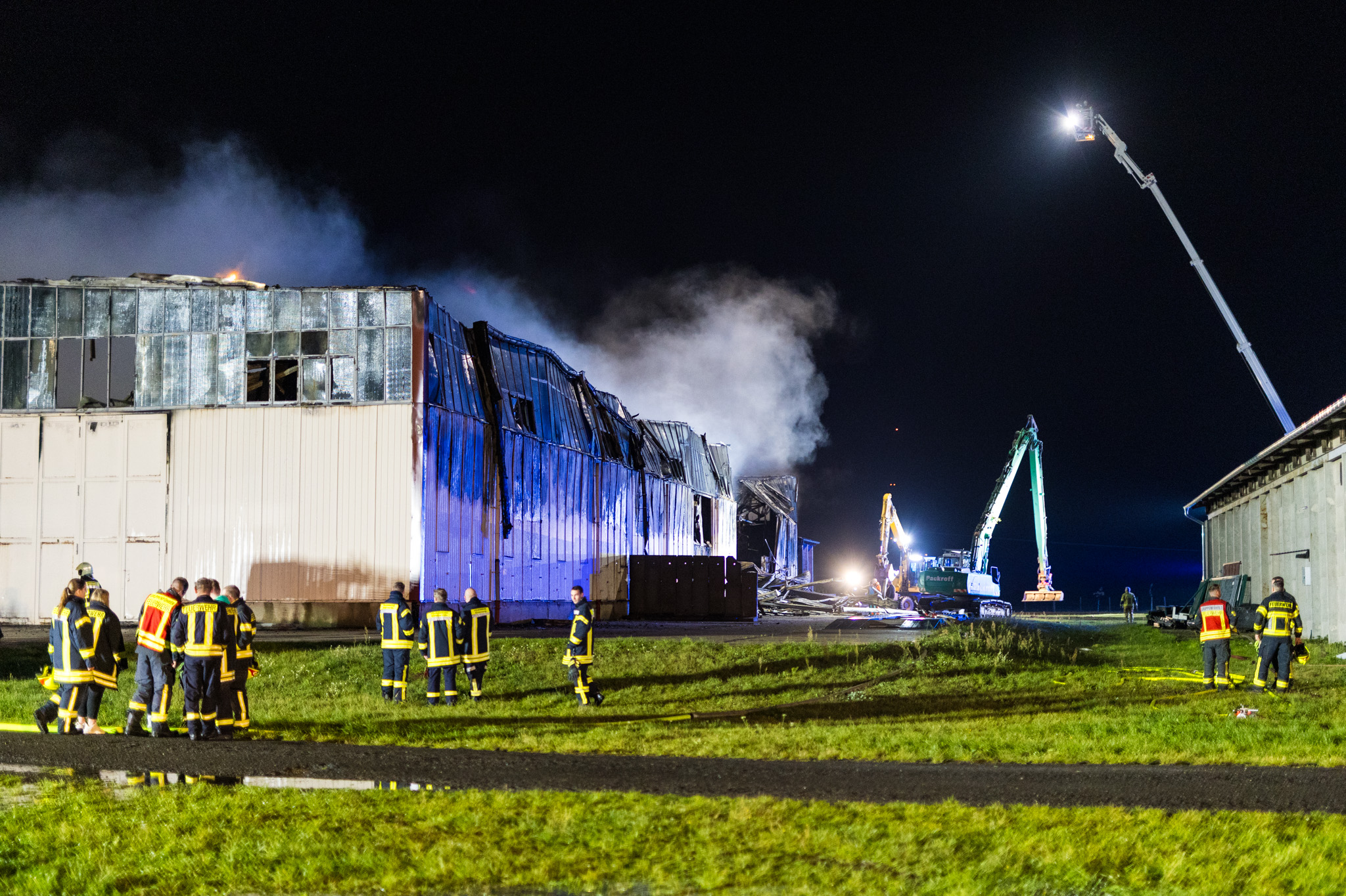 Zur Sicherstellung der Löschwasserversorgung mussten mehrere Wasserentnahmestellen eingerichtet und über weite Strecken Leitungen verlegt werden. Die Löscharbeiten gestalteten sich schwierig, da die Halle vollständig zerstört ist. Teile der Wände sind bereits eingestürzt, weitere Einstürze drohten, wie Blaulichtreport Lausitz berichtete.
